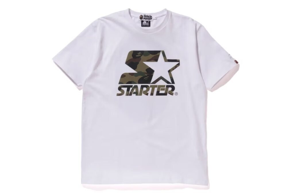 Uma camiseta branca e um snapback complementa a pequena coleção cápsula da A BATHING APE e Starter Black Label, que será lançada em 6 de janeiro nas lojas da BAPE em todo mundo.