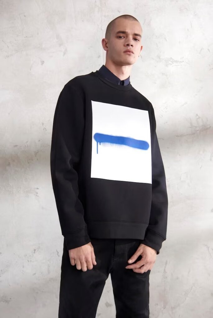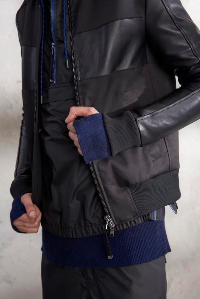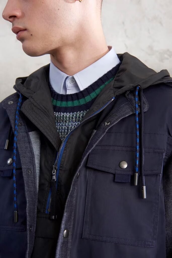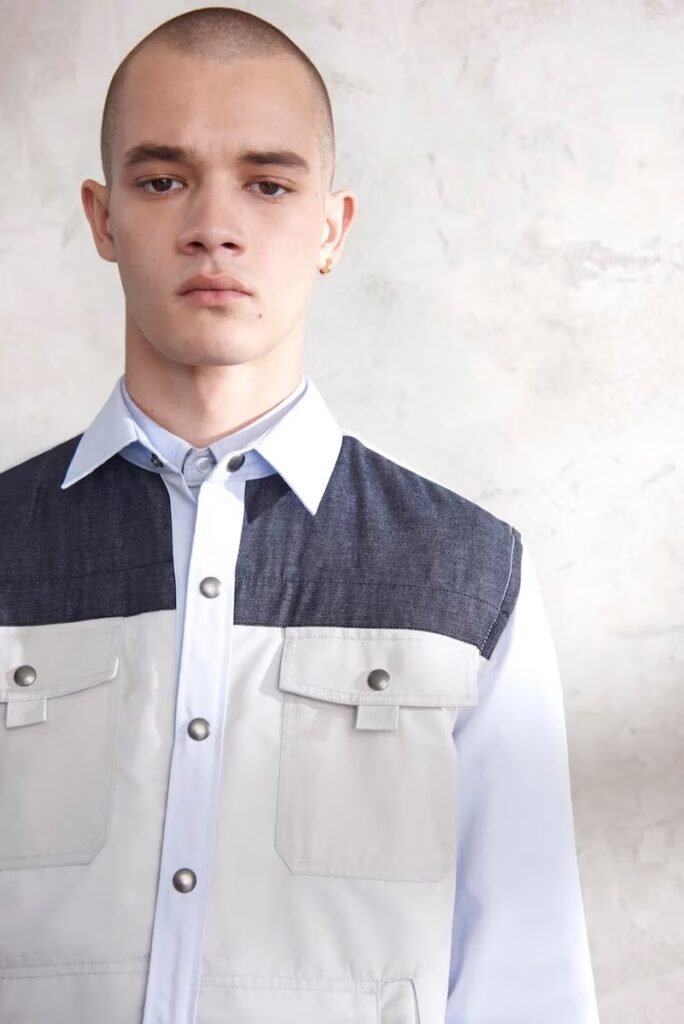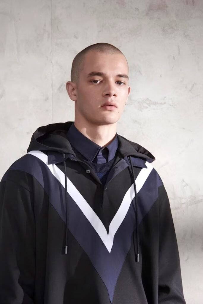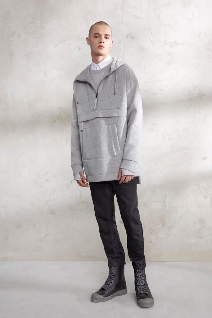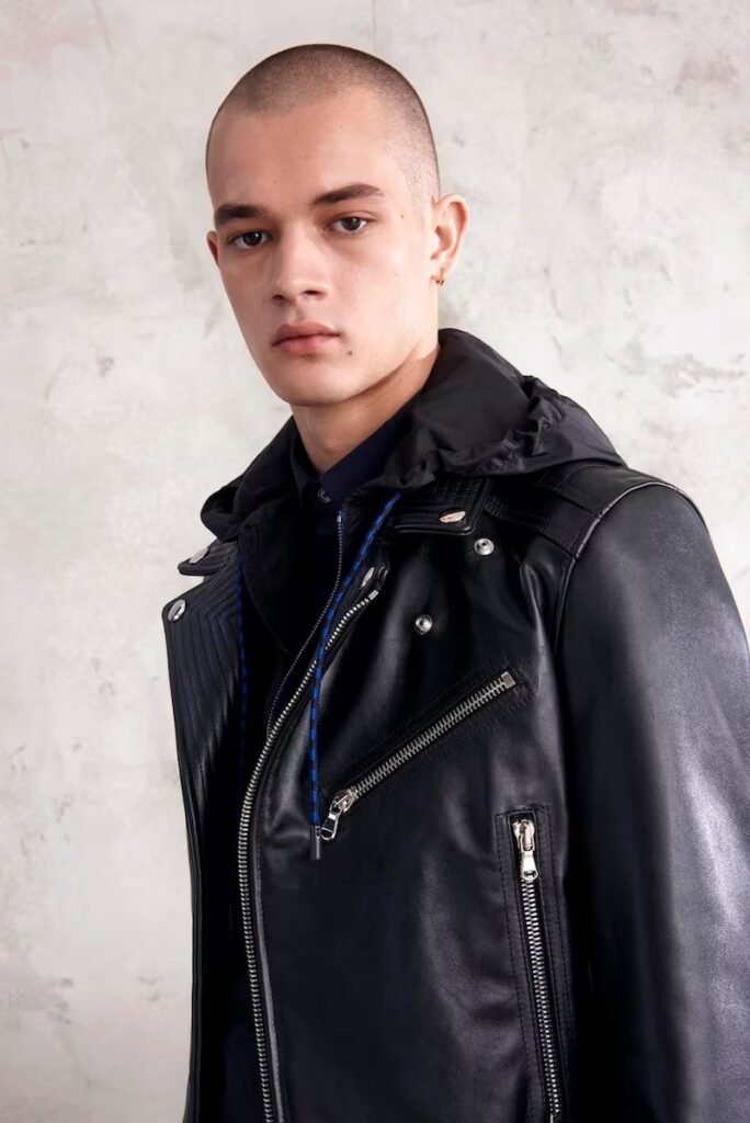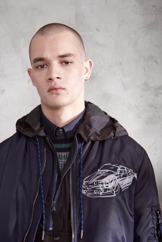 Jeans slim e calças compõem a maioria na parte de baixo, com algumas calças mais largas que oferecem equilíbrio para o estilo robusto e sapatos de estilo Palladium. A paleta de cores é tão expansiva quanto os têxteis, com jaquetas de couro em azul e preto, com anoraks cinza e cagoules de poliéster verde que combinam com calças de material misto de olive e navy. Confira a gama completa no site da marca.