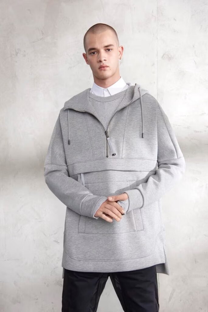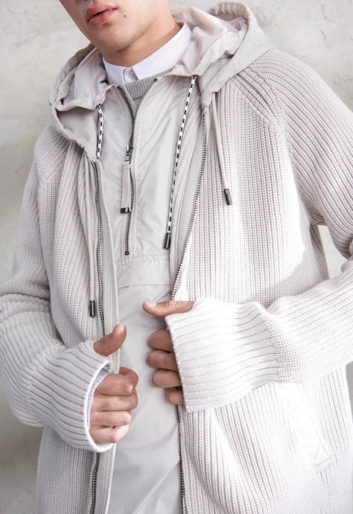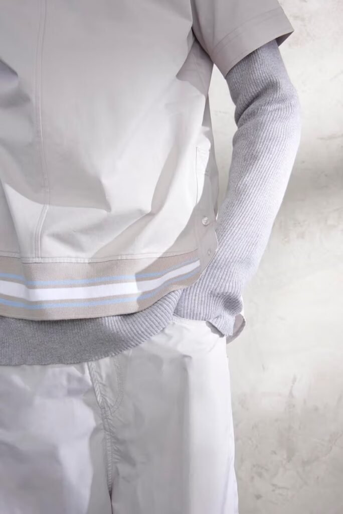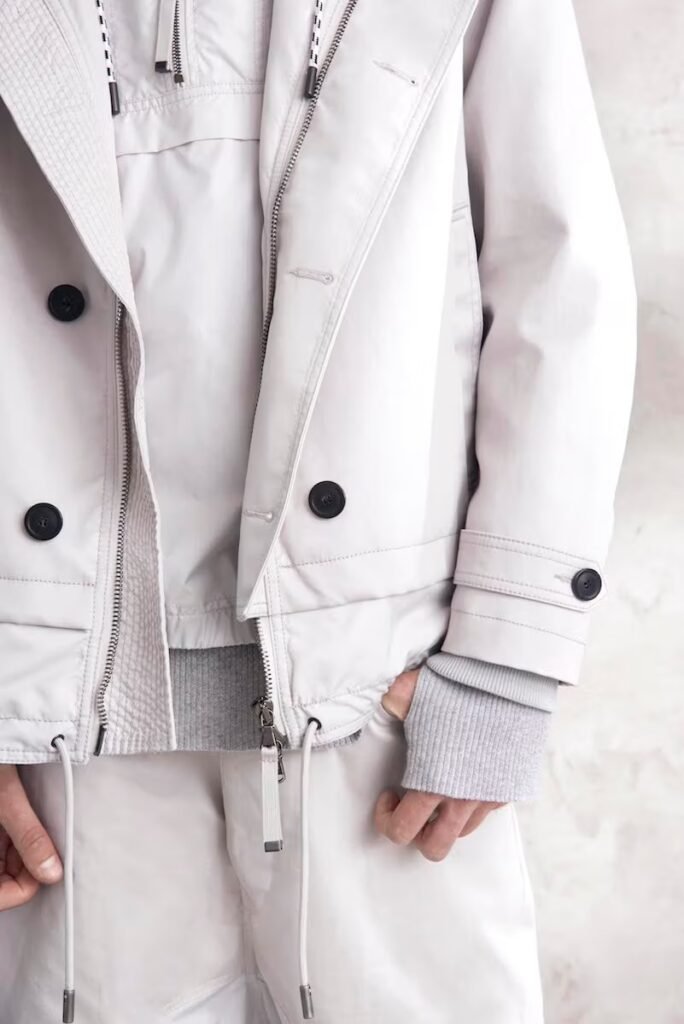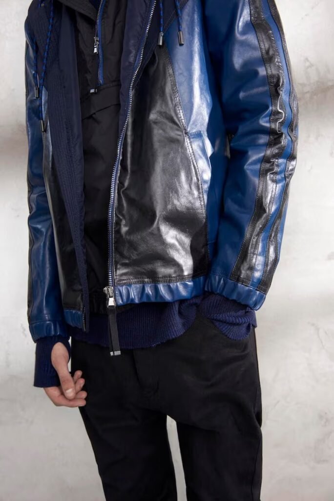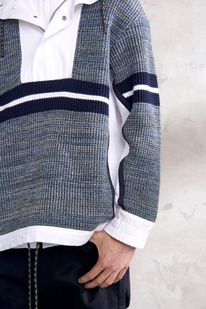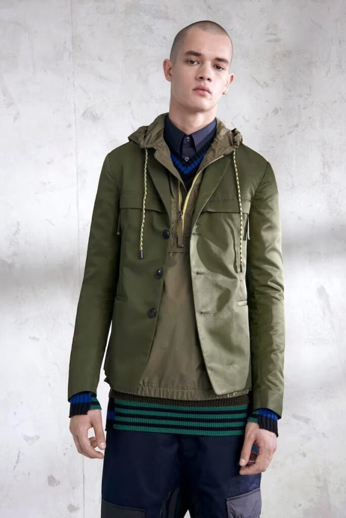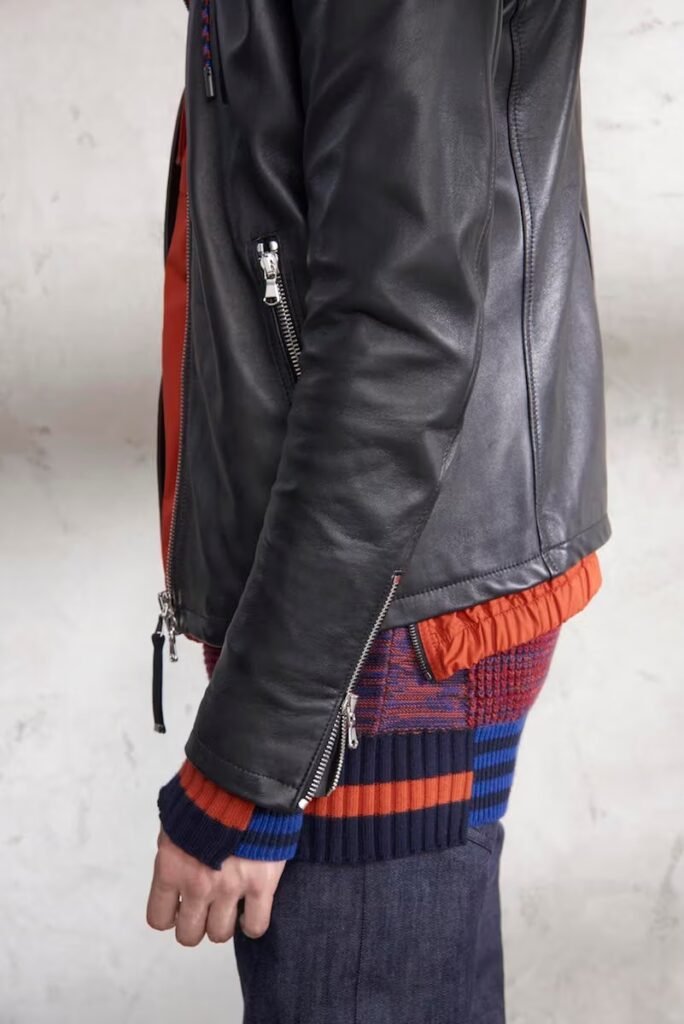 Jeans slim e calças compõem a maioria na parte de baixo, com algumas calças mais largas que oferecem equilíbrio para o estilo robusto e sapatos de estilo Palladium. A paleta de cores é tão expansiva quanto os têxteis, com jaquetas de couro em azul e preto, com anoraks cinza e cagoules de poliéster verde que combinam com calças de material misto de olive e navy. Confira a gama completa no site da marca.
