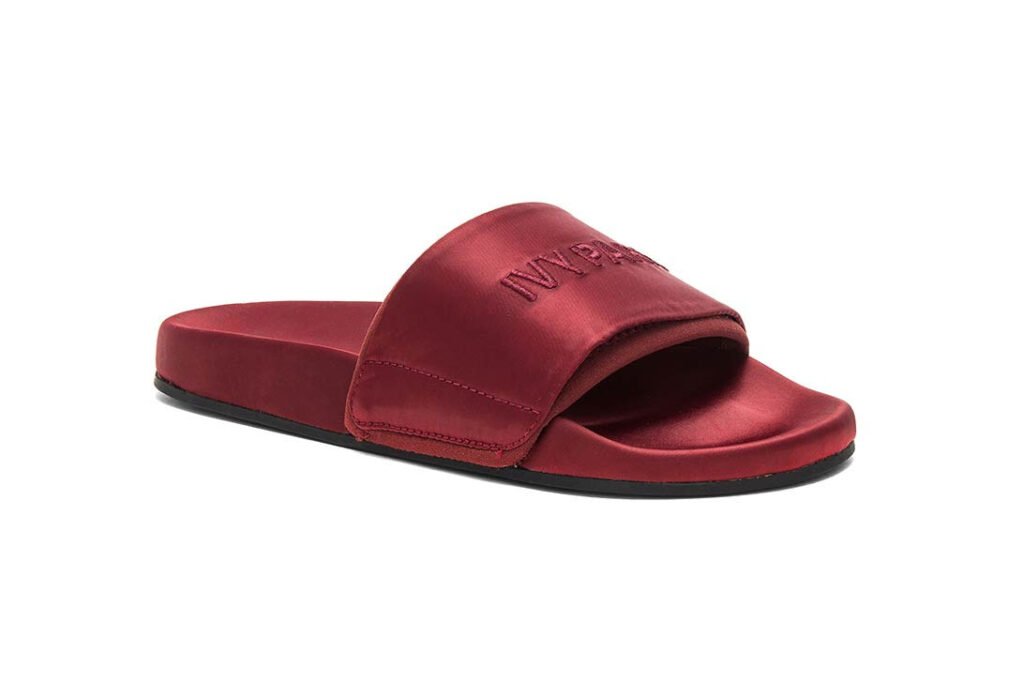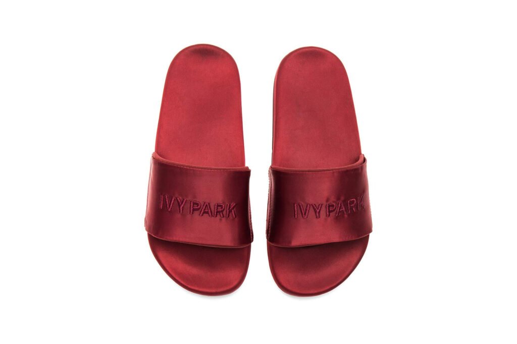 IVY PARK lançou seus novos slides com um acabamento alto brilhante que manterá um brilho duradouro. As sandálias chegam em tons de vermelhos “Russet” e azul “Rainstorm”. Cada sola é trabalhada à mão e costurada na parte superior de tecido macio que está gravada com o logotipo da marca. Os modelos podem ser usados no conforto de sua casa ou fora. Os slides da IVY PARK estão disponíveis na Revolve por 50 dólares cada.