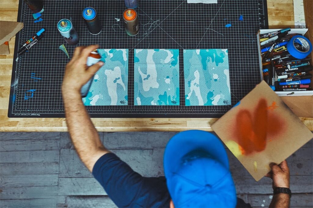 Para colecionadores, a colaboração trouxe um diferencial raro. A PSA, referência em autenticação e certificação, disponibilizou peças de arte encapsuladas com trabalhos originais de Stash. Cada obra é assinada à mão pelo artista e alguns itens em tecido camuflado receberam toques finais diretamente de Stash, transformando-os em peças únicas que transitam entre objeto de arte e equipamento funcional.