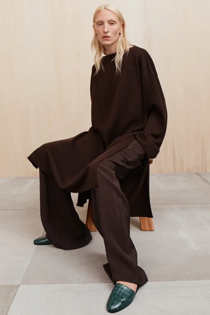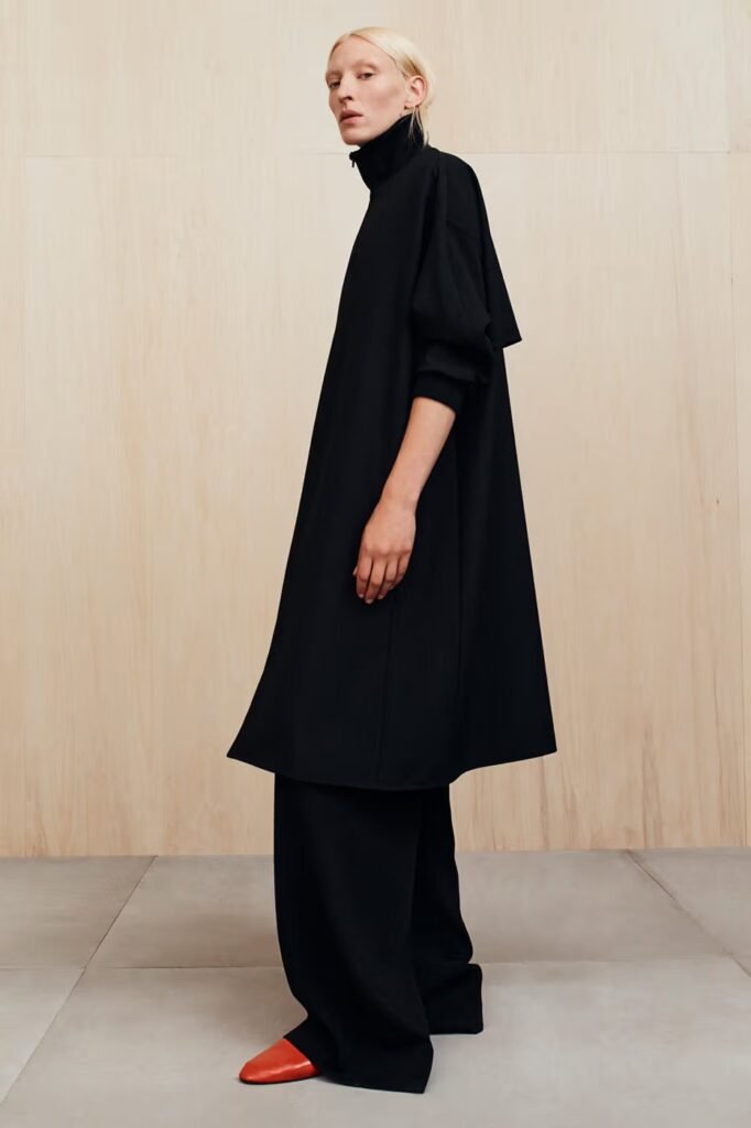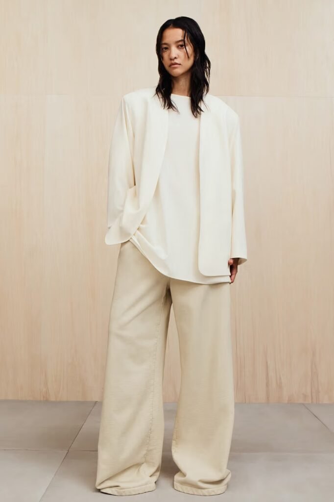 A coleção inaugural destaca a atenção meticulosa ao acabamento e à construção. Entre as peças, surgem alfaiataria em lã cashmere generosamente estruturada com ombros suaves, além de silhuetas cropped esculturais com barras delicadamente franzidas. É uma proposta moderna e multifacetada, que combina tecidos técnicos e fleece produzido em Los Angeles com lãs italianas luxuosas e cashmere dupla face.