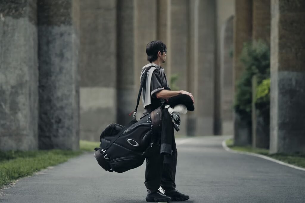 A mais recente campanha “Future Genesis” mergulha em paisagens distópicas e atmosferas hiper-futuristas, transformando visuais de ficção científica em linguagem sartorial. A colaboração com Hypegolf traduz essa visão em peças refinadas e minimalistas, com um ar de cool que remete à ousadia dos óculos Oakley.