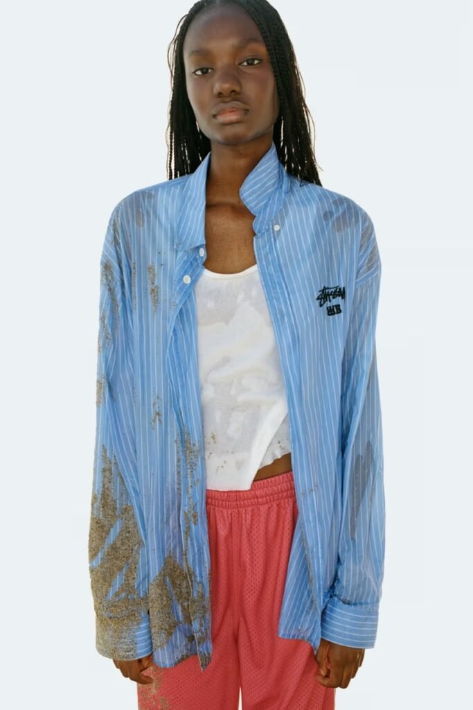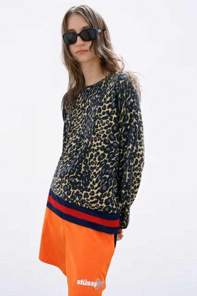 As peças refletem os códigos de estilo característicos de Wales Bonner, trazendo blazers transpassados confeccionados em lã Loro Piana, couro “Bark Brown” e pólos de seda. A coleção também apresenta silhuetas casuais com detalhes surpreendentes, como shorts com barra franjada, camisas listradas com logo, suéteres de estampa animal print, jeans stonewash com tachinhas, bermudas bordadas e um sarong de praia criado em colaboração com o designer Peter Miles. Cada item traduz a essência surf de Stussy filtrada pela estética de alta-costura de Wales Bonner.