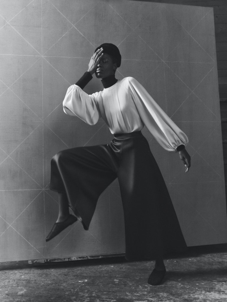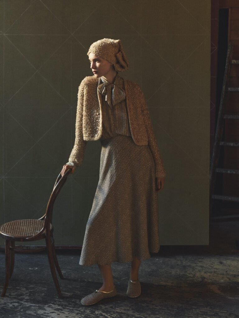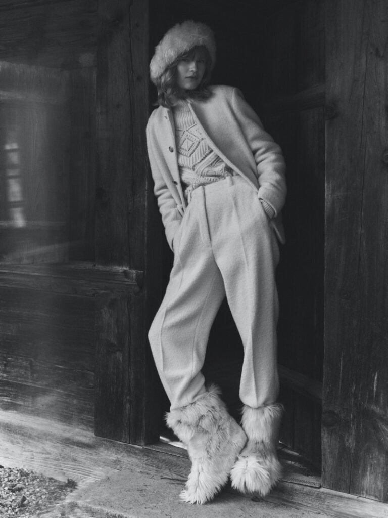 A Holiday Collection reúne peças versáteis que transitam do dia para a noite, desde vestidos esculturais de malha até casacos volumosos e essenciais de après-ski, transformando o ato de se vestir no inverno em uma forma de arte. As roupas falam através das texturas: baby cashmere, mohair felpudo e bouclé tátil adicionam profundidade às silhuetas simples.