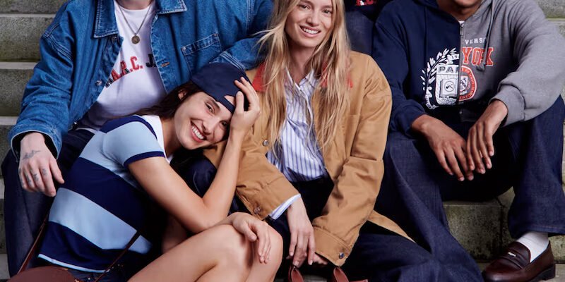 Inspirada na estética colegial, a linha capta a atmosfera de uma época em que a moda passava a representar autenticidade e autoexpressão. Varsity jackets, camisas sob medida, moletons e o icônico denim da A.P.C. ganham novas interpretações, com cortes precisos, tecidos estruturados e referências sutis à juventude de ambos os criadores.