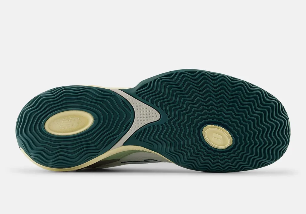 A paleta de cores é informada pela natureza, usando tons de verde escuro e claro que remetem à vasta vegetação e folhagem que definem a paisagem onde Flagg cresceu. Esse visual orgânico é contrastado por uma base em malha (mesh) cinza e detalhes em creme na entressola, complementado por um painel de suporte aos cadarços em verde-abeto. Sendo um tênis de performance, o Hesi Low V2 é equipado com uma entressola FuelCell de comprimento total, um padrão de tração redesenhado para movimentos multidirecionais e um cabedal em knit mesh projetado para respirabilidade e suporte. A estabilidade é garantida por um contador de calcanhar em TPU e uma placa de nylon no mediopé.