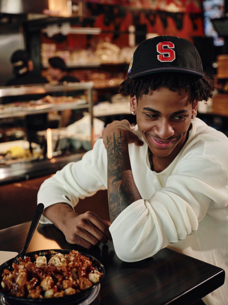 “Meu foco é o basquete, mas sempre que posso mostrar outro lado de mim, eu curto. A energia do set com a New Era estava lá em cima, os looks estavam limpos, e tudo refletia meu estilo. É uma marca que sempre fez parte da minha vida, então participar dessa campanha foi natural”.