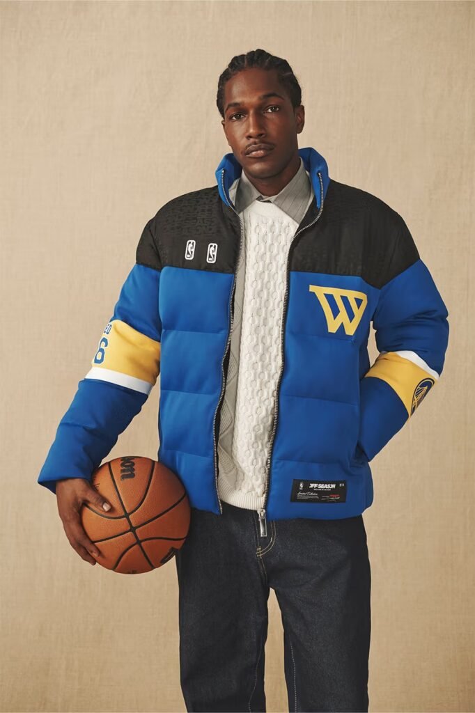 A coleção unissex apresenta jaquetas confeccionadas com tecidos premium, incluindo painéis em color-blocking, tecidos jacquard personalizados e patches de silicone 3D das equipes e da liga. O lançamento exclusivo, com preços entre $285 e $375 USD, está disponível na NBAStore, no site oficial da Off Season e em lojas selecionadas das equipes.