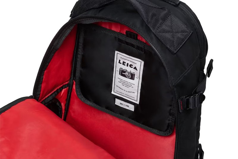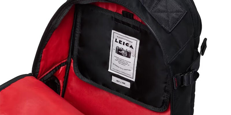 Cada detalhe foi pensado para o uso no mundo real. Tanto a mochila quanto o case possuem zíperes laterais para acesso externo rápido, um design inspirado nas necessidades de profissionais que dependem de imediatez. Os painéis inferiores de cada peça são reforçados com couro tratado com Scotchgard, oferecendo resistência à água e durabilidade. Além disso, cada bolsa inclui uma etiqueta de metal personalizada gravada com um número de série único, inspirada nas marcações de arquivo da Leica.