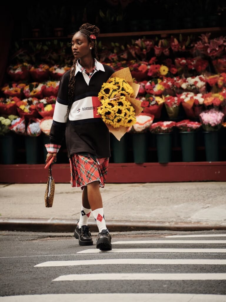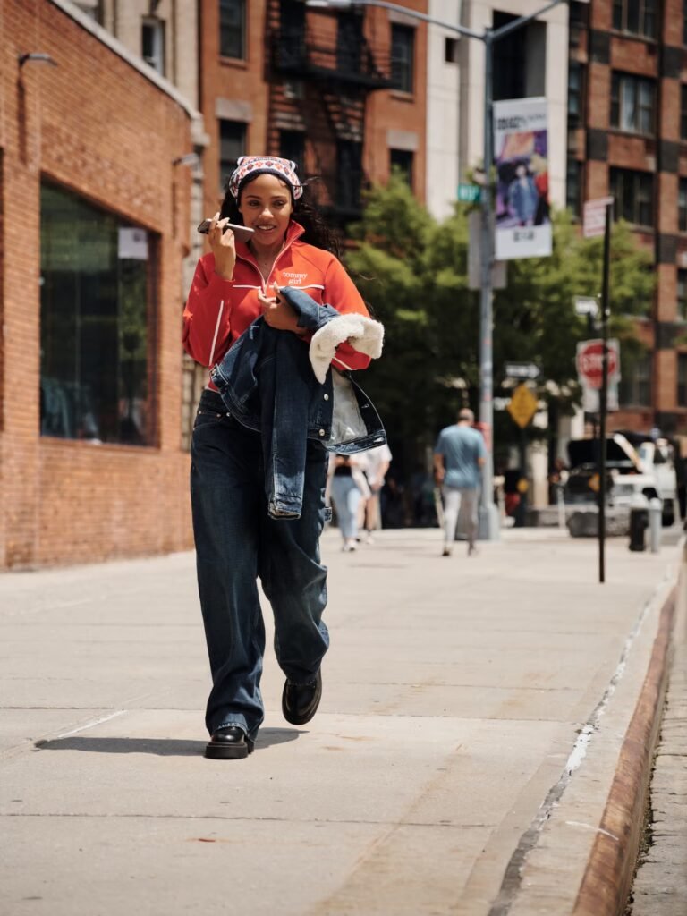 Me conecto com a energia da Tommy Jeans através da mistura do inesperado — seja na música ou na moda. Assim como uma música combina diferentes sons para criar algo novo, eu amo misturar denim com alfaiataria, ou uma peça esportiva com algo ousado e divertido. Estilo é sobre confiança e autoexpressão, quebrar um pouco as regras — e é essa atitude da Tommy Jeans que levo comigo, no palco e na vida cotidiana”.