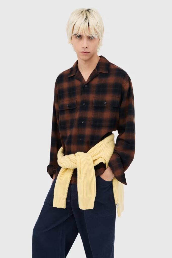 Já os tons terrosos aparecem em peças como a PUFFTECH Utility Jacket, disponível em marinho, cáqui e oliva, e nas camisas de flanela xadrez, em tons como marrom caramelo. Para o público feminino, o poncho de tricô se destaca como peça versátil e elegante, podendo ser usado como manta ou sobreposição.