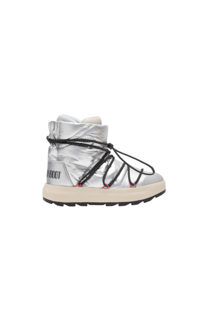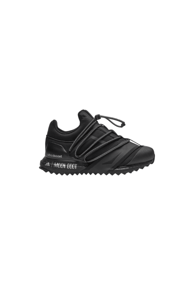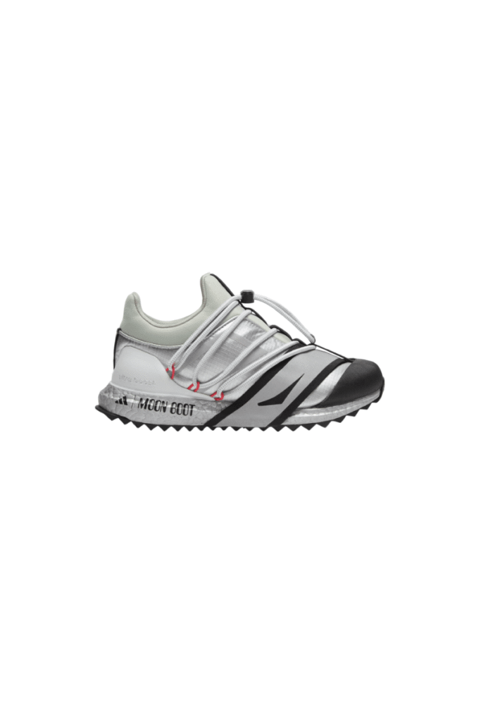 No território dos sneakers, o lançamento apresenta duas silhuetas híbridas disponíveis em preto e prata. O Moon Boot Ultraboost reinterpreta o corredor tradicional com a tecnologia responsiva BOOST e um sistema de amarração versátil. Já o Moon Boot ACE funde o upper acolchoado clássico da marca de botas com a entressola ultraleve Lightstrike da adidas, projetada para velocidade e exploração ativa.