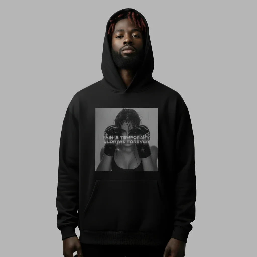 A coleção se desdobra em diferentes narrativas têxteis, começando pela série Acid Wash, composta por Hoodie e Tee em algodão premium que introduzem texturas lavadas e uma complexidade silenciosa ao preto característico da marca, evitando contrastes gritantes em favor de nuances táteis. Avançando para uma abordagem mais gráfica, a linha “Glory” traduz a psicologia do treinamento e o foco mental em obras de arte estilizadas, capturando a intensidade emocional do esporte sem recorrer a motivos agressivos.
