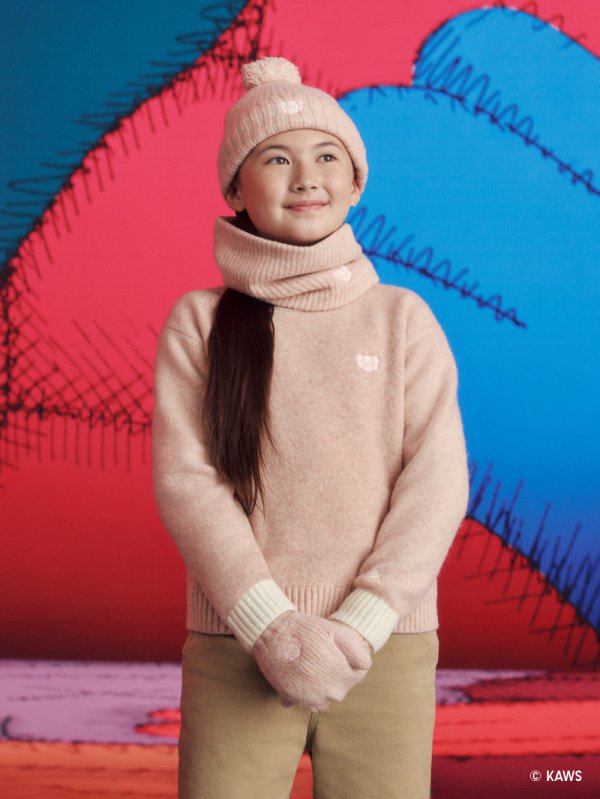 Cada peça é adornada com o clássico motivo “XX” do artista ou com seu icônico personagem COMPANION. A linha oferece estilos para toda a família, incluindo suéteres de cashmere e lã de cordeiro para adultos, e suéteres de fio soufflé para crianças. A coleção é complementada por uma gama de acessórios HEATTECH, incluindo gorros, luvas, cachecóis e aquecedores de pescoço.