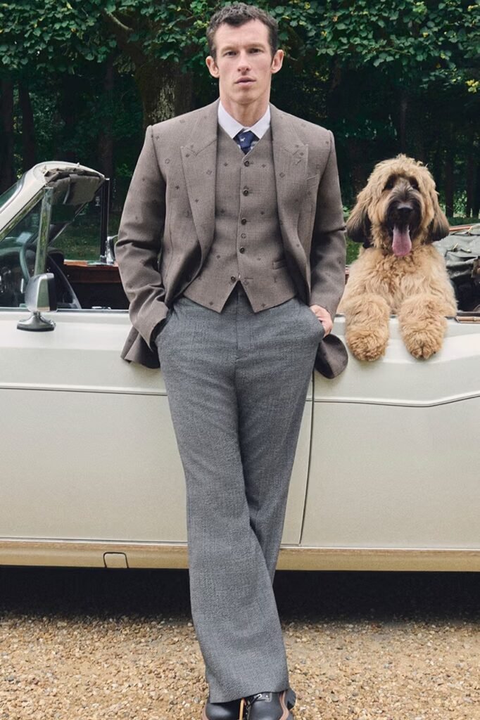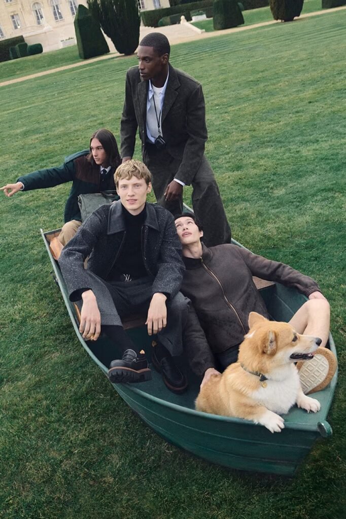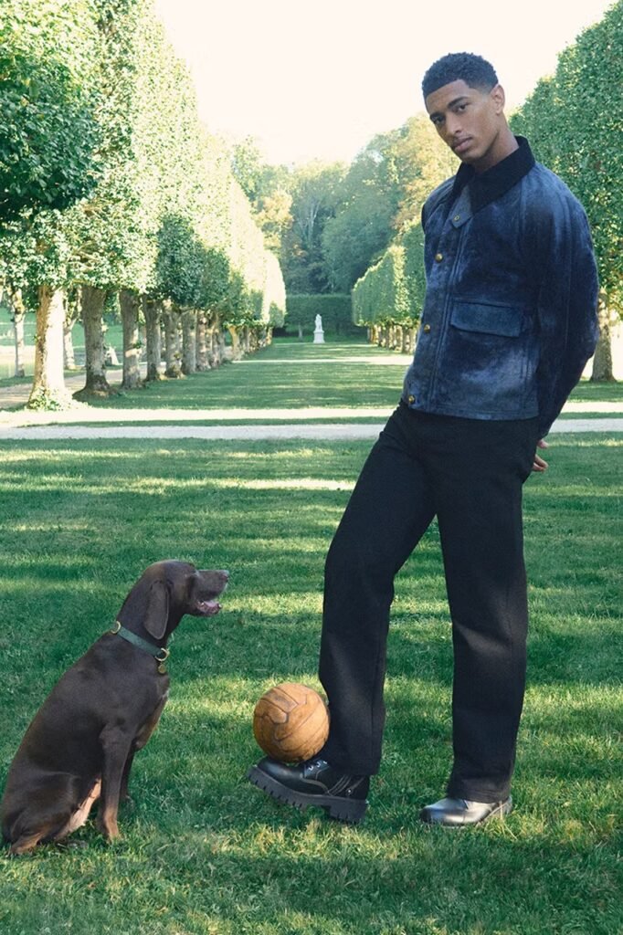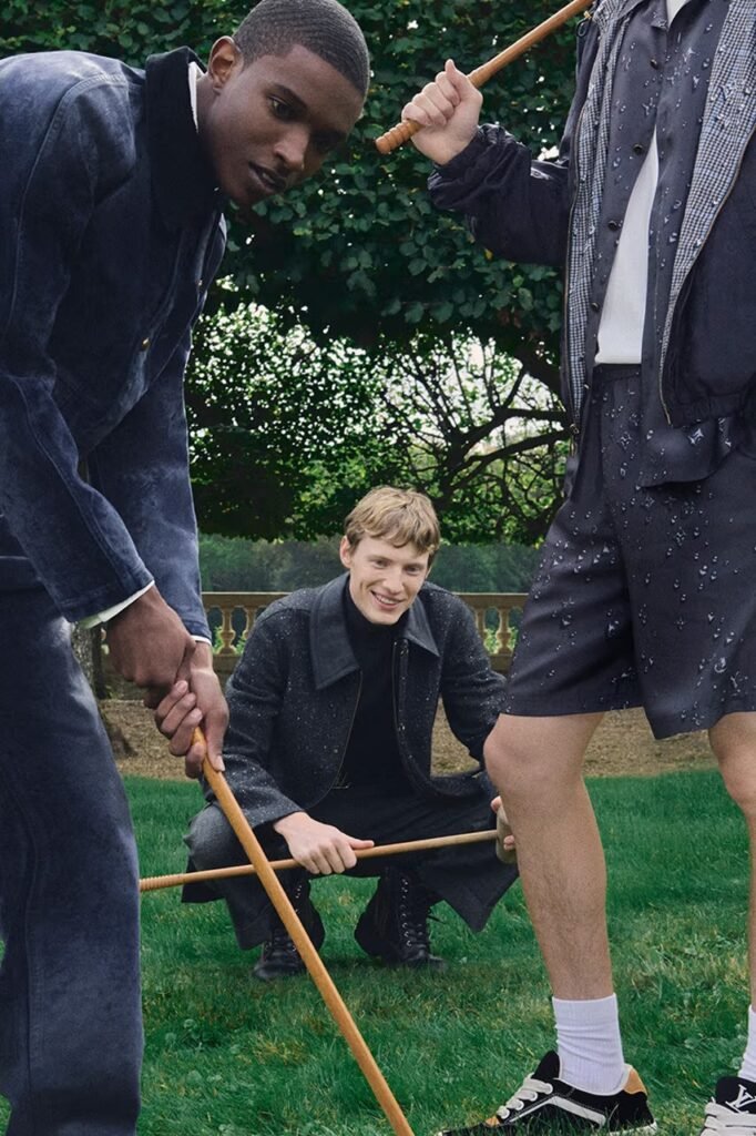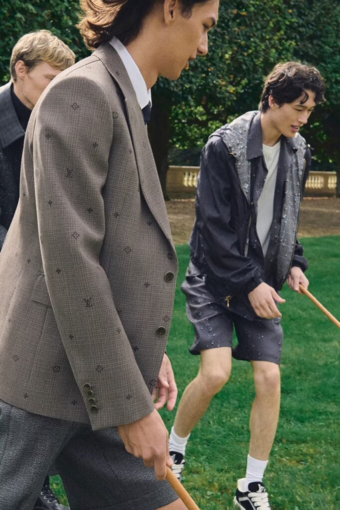 Para a coleção Pre-Primavera 2026, a Louis Vuitton atravessou o canal até o Reino Unido, buscando inspiração no campo inglês. Estrelando a campanha, o “Friend of the House” e jogador de futebol Jude Bellingham e o ator Callum Turner representam sua herança inglesa em estilos que se baseiam em trajes de campo clássicos e na alfaiataria britânica.