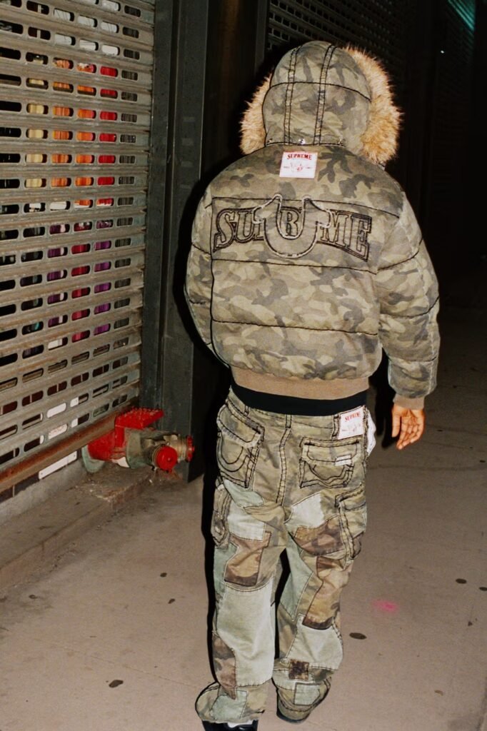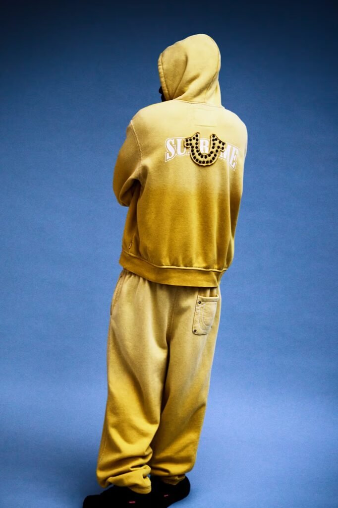 A Supreme mergulha na nostalgia do denim do início dos anos 2000 ao firmar parceria com a True Religion para uma coleção abrangente de Outuno 2025. Esta colaboração dinâmica revive a estética de alto contraste da era Y2K, fundindo as costuras icônicas da marca de jeans com o domínio do streetwear da etiqueta nova-iorquina em uma linha de vestuário diversificada.
