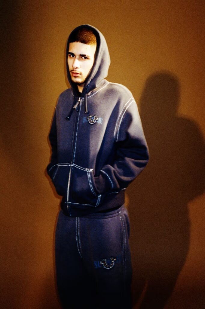 O elemento definidor do design é a mistura dos logotipos e da iconografia central de ambas as marcas. O logotipo de ferradura da True Religion e as costuras contrastantes distintivas aparecem proeminentemente nas peças, conferindo à coleção uma estética inconfundível e “loud”. Acessórios completam o lançamento com opções para o clima frio, incluindo um boné robusto Earflap 5-Panel e um Beanie clássico.