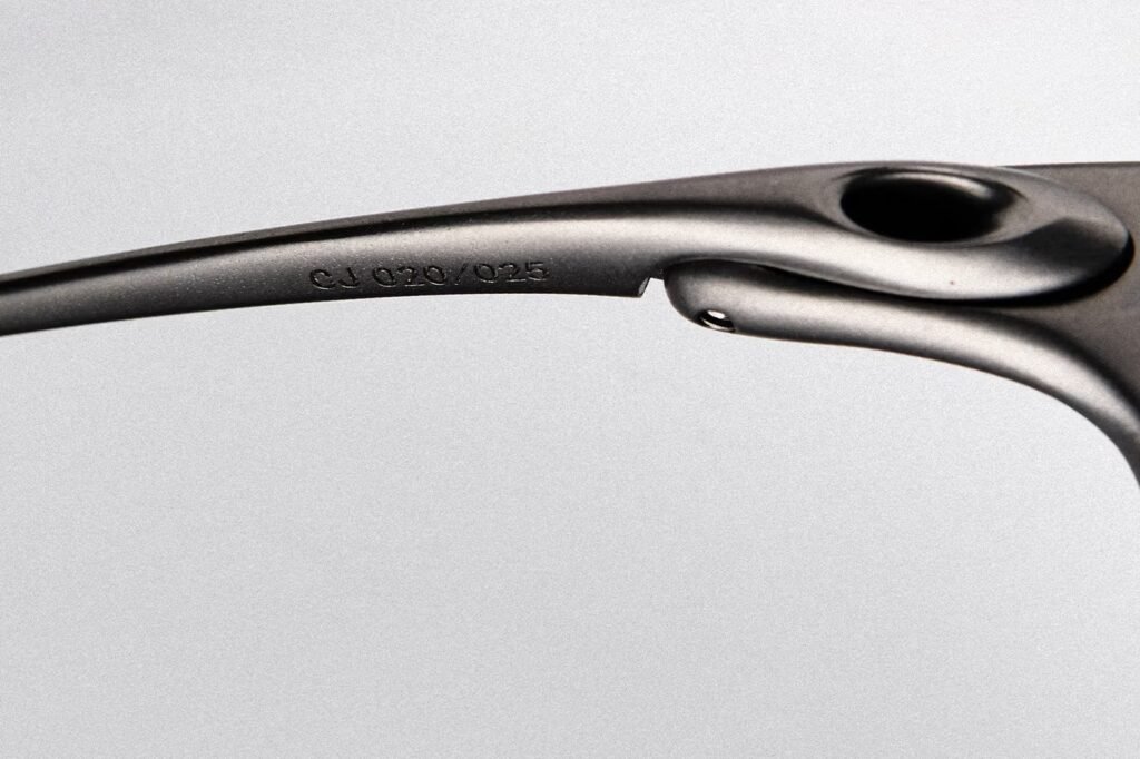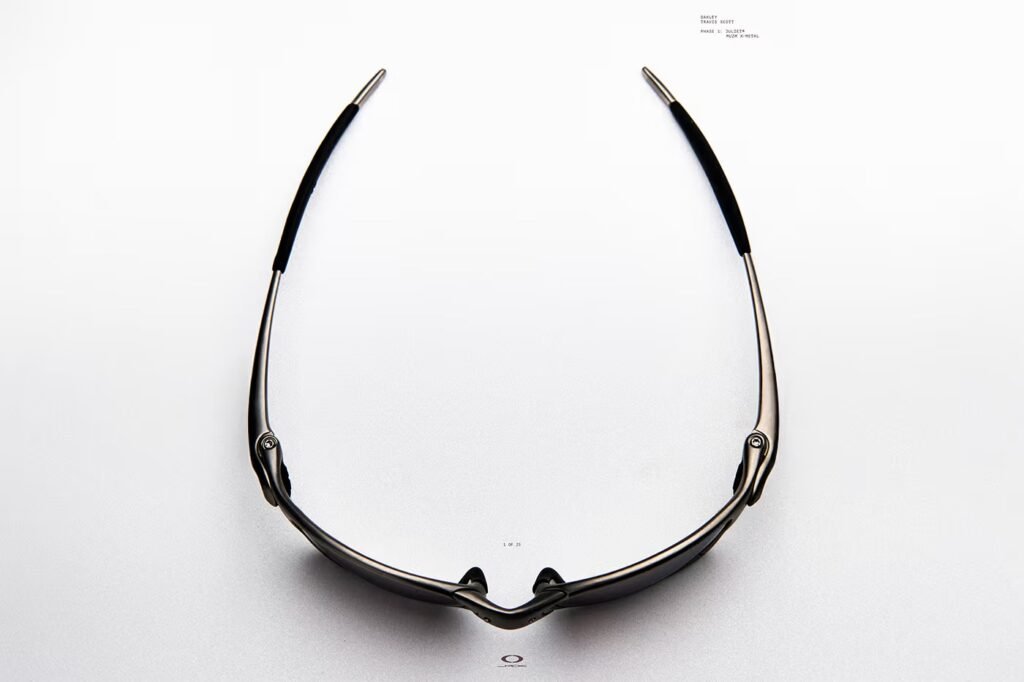 O modelo MUZM X-Metal Juliet combina arte e física, forjado a partir de uma liga de titânio de metal líquido sob calor extremo. A estrutura é projetada para se ajustar aos contornos do crânio com amortecedores nas hastes (temple shocks) e componentes ajustáveis, enquanto as lentes apresentam a tecnologia Plutonite Prizm Polar para clareza óptica precisa. Scott honra a construção original de 1999, mas introduz inovações sutis, como a gravação serializada nas hastes acompanhada pelas iniciais “CJ” da Cactus Jack, elevando o status de raridade da peça.