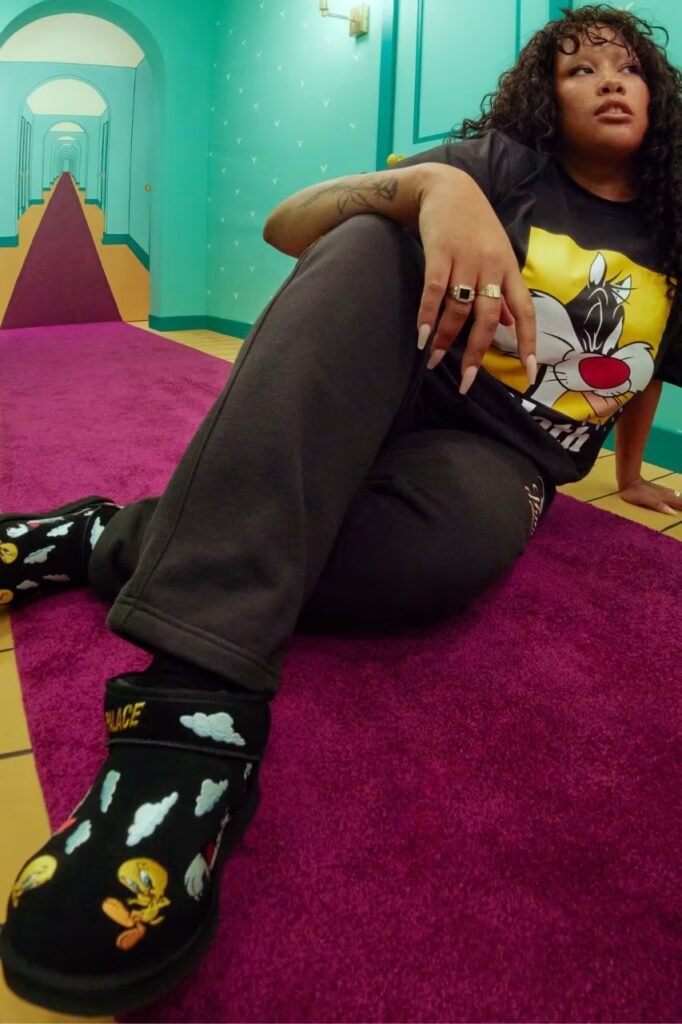 A UGG e a Palace Skateboards retornam para sua quarta coleção conjunta, desenvolvida em parceria com a Warner Bros. Discovery Global Consumer Products. Esta linha de calçados e vestuário propõe uma fusão lúdica entre a estética de skate e o conforto de inverno, trazendo um toque de nostalgia “holiday” ao colocar sob os holofotes os icônicos personagens dos Looney Tunes: Piu-Piu e Frajola.