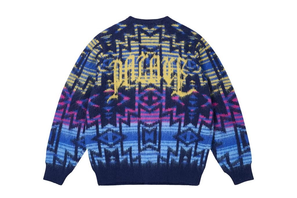 Simultaneamente à colaboração, a Palace estreou seu segundo drop da temporada de Holiday, repleto de crewnecks com estética universitária, cardigans com tricô Navajo e jaquetas bomber.