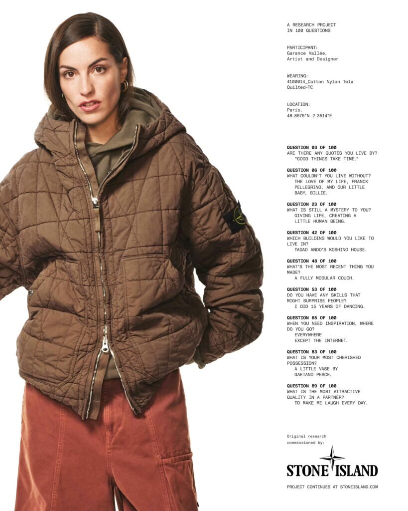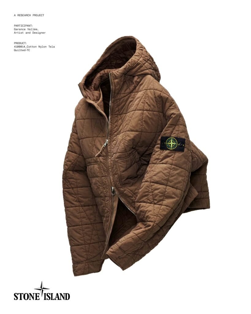 A campanha equilibra habilmente nomes de alto perfil com criativos do circuito insider, uma curadoria que se tornou assinatura da marca. Ao lado de Maldini e Obrist, o elenco inclui o lutador equatoriano do UFC Chito Vera, a artista e designer de móveis Garance Vallée e o especialista em áudio Shivas Howard Brown. A temporada de verão não impede a Stone Island de exibir sua maestria em outerwear técnico. As peças de destaque incluem uma jaqueta de couro bovino de grão fino com corte solto, vestida por Vera, cuja textura é amplificada por cera aplicada em tambores rotativos. Já Maldini exibe uma field jacket monocromática feita de linho colado a um jersey de nylon leve, garantindo estrutura e sofisticação.
