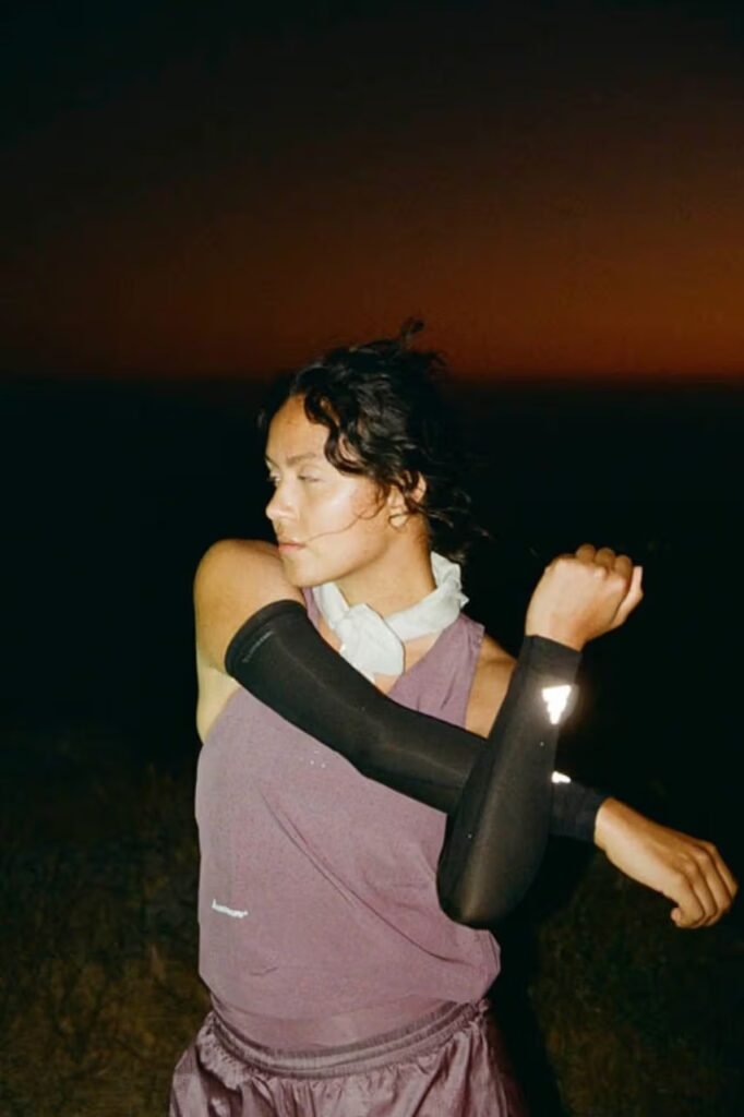 A linha de vestuário é definida por uma paleta sóbria e elegante de cinza escuro, malva e off-white, colorindo peças essenciais como shorts, regatas, camisetas técnicas, bonés e um colete de corrida leve. Projetados tanto para atletas sérios quanto para corredores de fim de semana, os tecidos priorizam a respirabilidade e o conforto, garantindo leveza mesmo em longas distâncias.