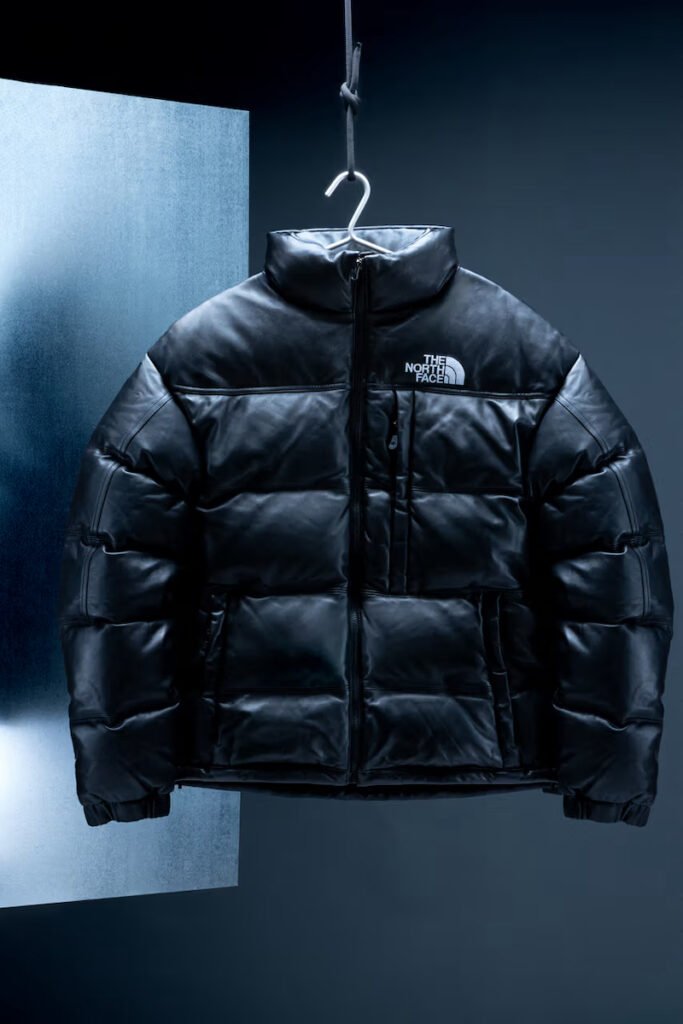 A peça central da coleção é a Summit Jacket, que celebra seu 25º aniversário com uma forma reimaginada. A jaqueta mantém seu renomado isolamento de plumas 700-fill, mas introduz um exterior em couro de ovelha (sheepskin) que adiciona profundidade e estrutura. O design foi pensado para que o couro desenvolva uma pátina com o tempo, onde arranhões e vincos se tornam marcadores de uso, reforçando a conexão da peça com as condições do mundo real.