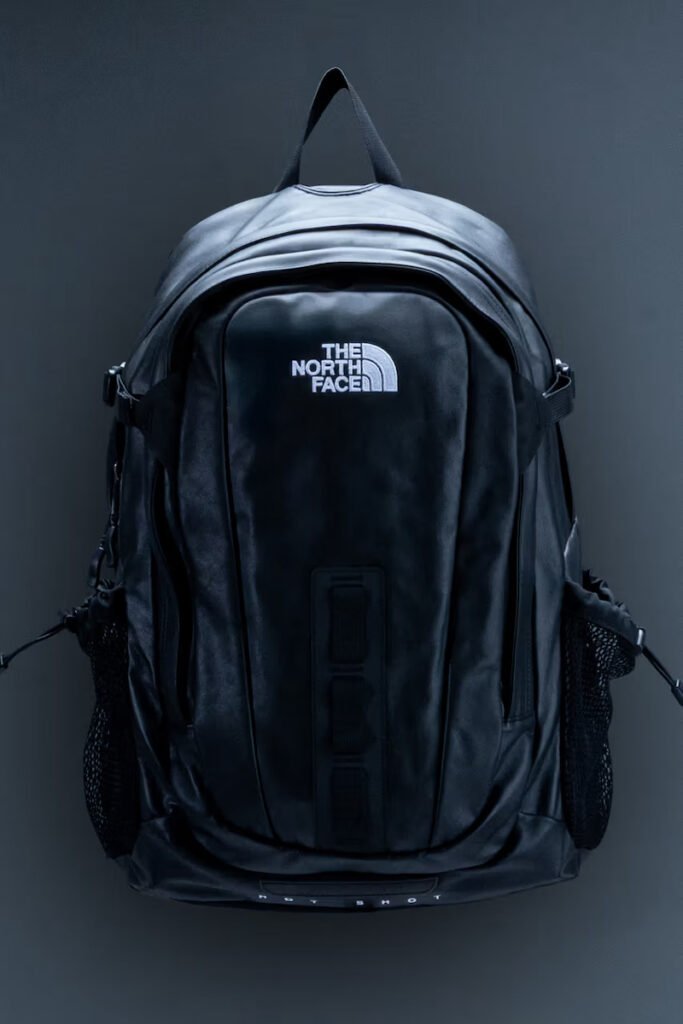 Completando a linha, a mochila Hot Shot marca seus 15 anos com uma construção totalmente em couro, oferecendo durabilidade aprimorada e compartimentos técnicos para o uso diário. Com uma paleta monocromática preta, a coleção reafirma a capacidade da The North Face de navegar na interseção entre credibilidade técnica e relevância cultural.