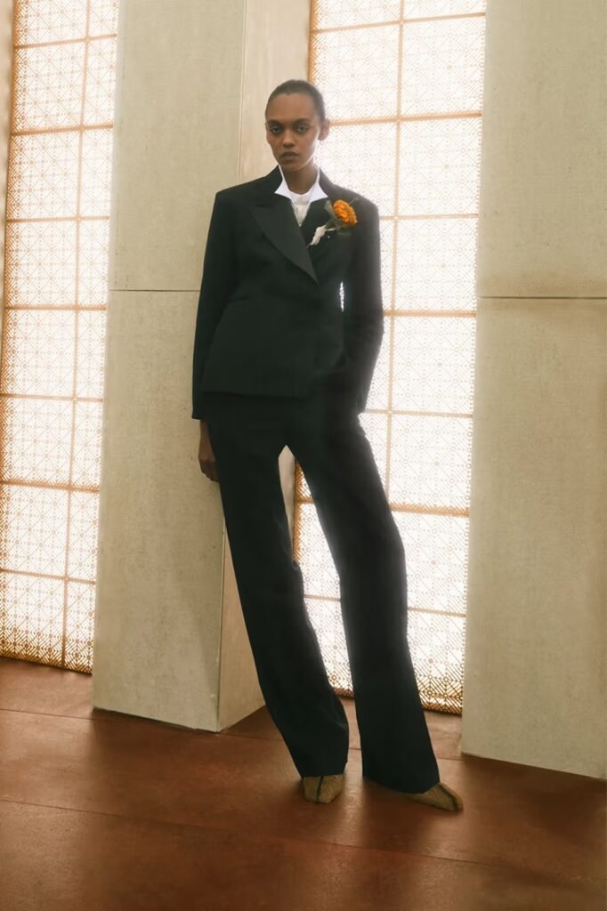 A coleção Outono/Inverno 2026 da Wales Bonner, intitulada “Morning Raga”, apresenta-se como uma meditação profunda sobre a harmonia elementar das tradições arquitetônicas modernistas. Inspirada pela visão humanista do arquiteto indiano Balkrishna Doshi, Grace Wales Bonner propõe um guarda-roupa que equilibra o prático e o sensual, reanimando uniformes arquetípicos com uma nova elegância.