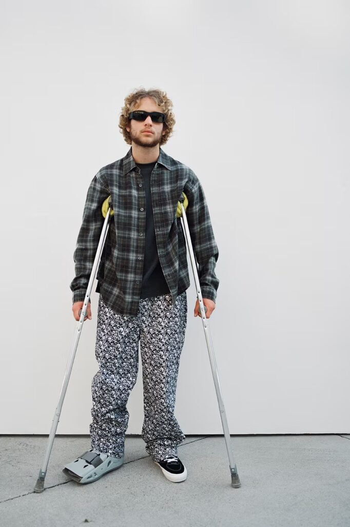 O diferencial da coleção é a abordagem da Stüssy em relação às estampas de animais. Em vez de tratá-las como peças de destaque ruidosas ou caricatas, a marca integrou padrões de leopardo e cobra ao fluxo do estilo diário. Uma jaqueta de leopardo com corte relaxado foi projetada para sobreposições fáceis, enquanto calças com efeito de pele de cobra surgem surpreendentemente sóbrias quando combinadas com as malhas leves e as camisarias listradas clássicas da coleção.