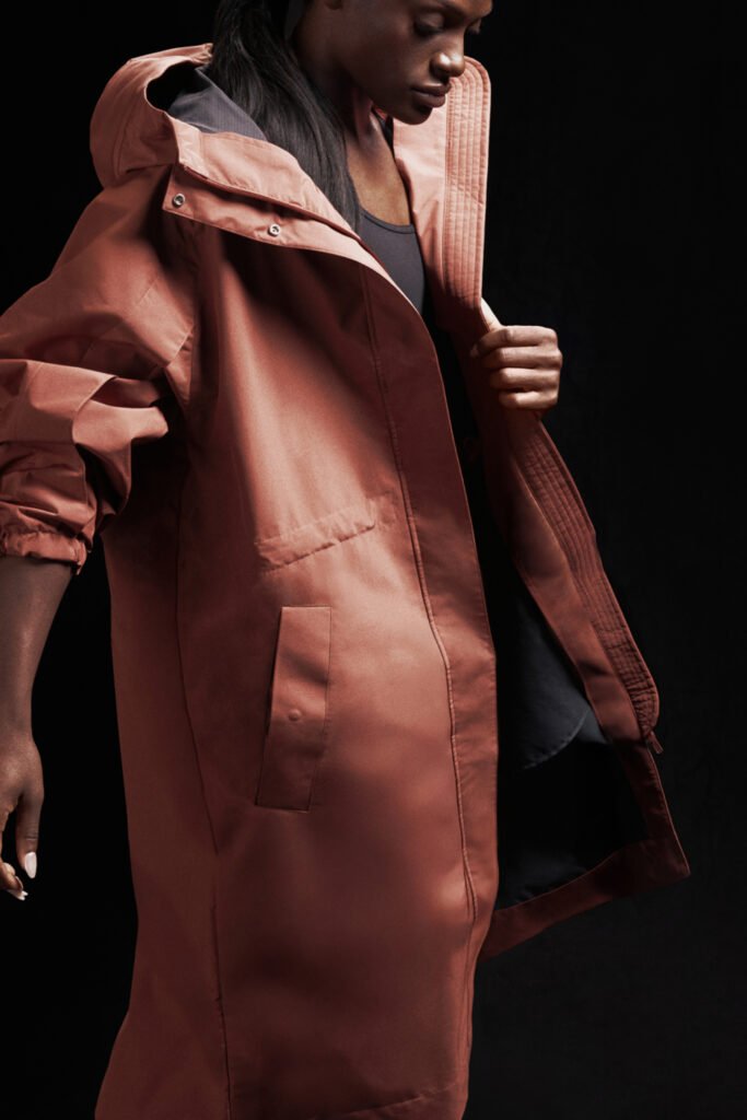 • Heavyweight Parka: Uma peça que mistura performance técnica e design elevado, disponível em preto e tons de terra (burnt sienna). Possui tecnologia CLIMAPROOF+, mangas oversized, detalhes em capa e cintura ajustável para personalização do caimento.
