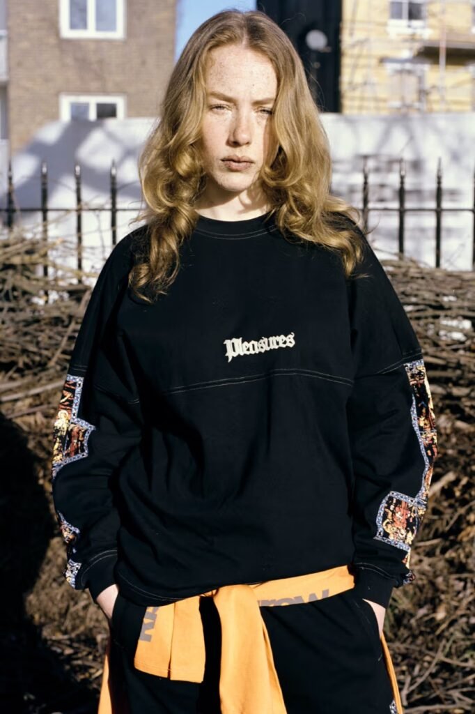 A linha combina gráficos ousados com itens essenciais utilitários, oferecendo uma mistura de peças casuais e itens de destaque desenhados para ressoar com o público global da marca. Fiel ao ethos da PLEASURES, a cápsula canaliza música, arte e motivos subculturais em peças de vestuário para o dia a dia, criando um guarda-roupa que parece ao mesmo tempo rebelde e acessível.