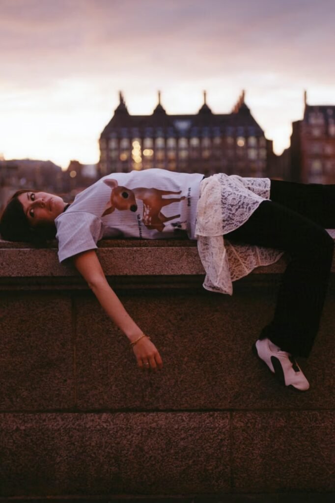 Fotografada em Londres pelo fotógrafo Jason Landis, a campanha acompanha um grupo de artistas locais enquanto navegam pela cidade em momentos de nostalgia e ritual. As imagens capturam encontros autênticos e vividos — desde o caminhar pelas ruas urbanas até a vida noturna — em vez de narrativas encenadas, garantindo que o vestuário seja visto em seu contexto natural e ativo.