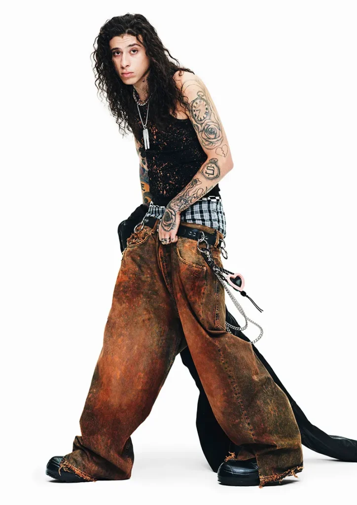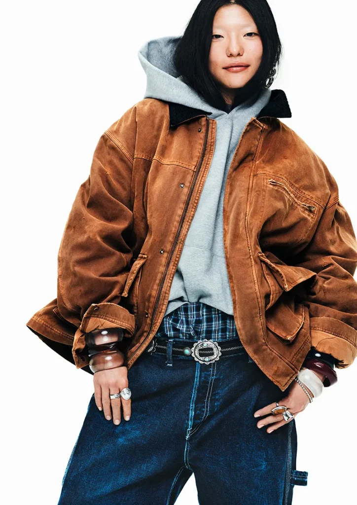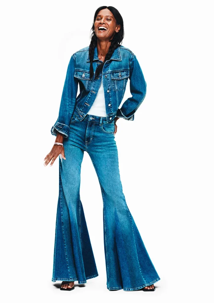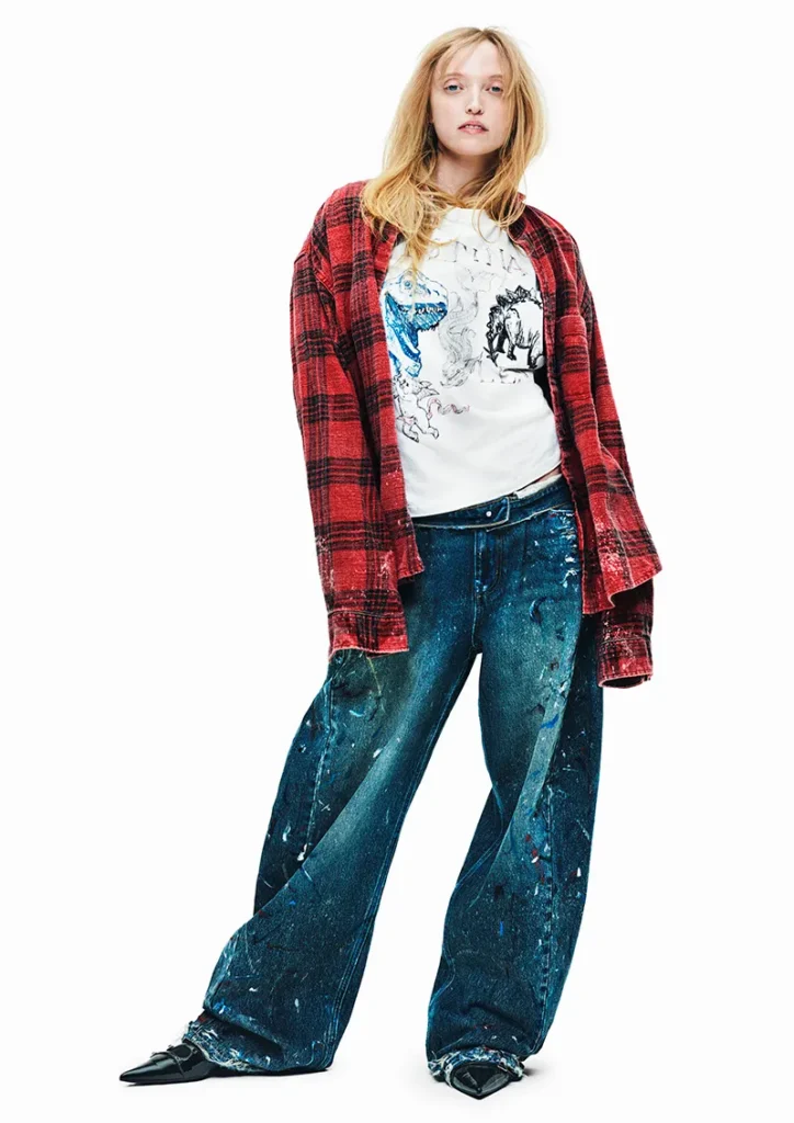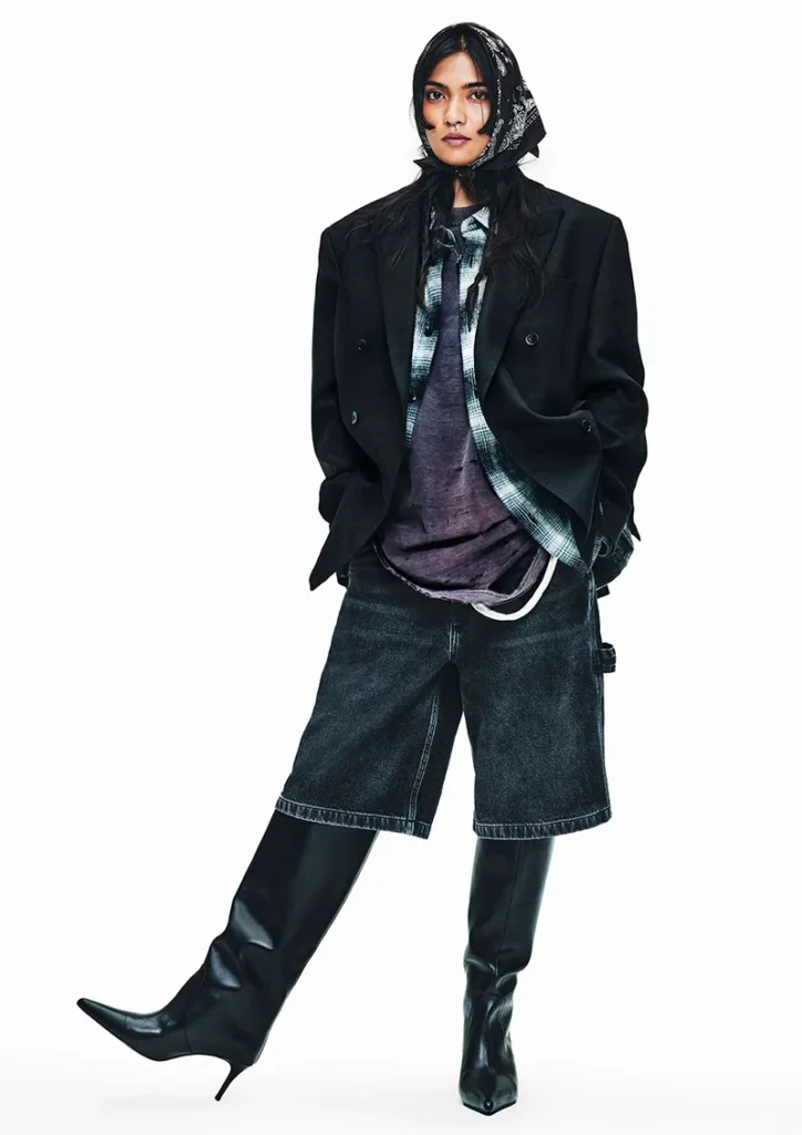 As silhuetas variam entre calças baggy de cintura baixa, modelos flare e jaquetas trucker com lavagens desgastadas, evocando um visual que parece “vivido e amado”. A curadoria de estilo mistura peças utilitárias com camadas básicas, botas elegantes e sapatos plataforma, reforçando a visão democrática da moda da gigante sueca.