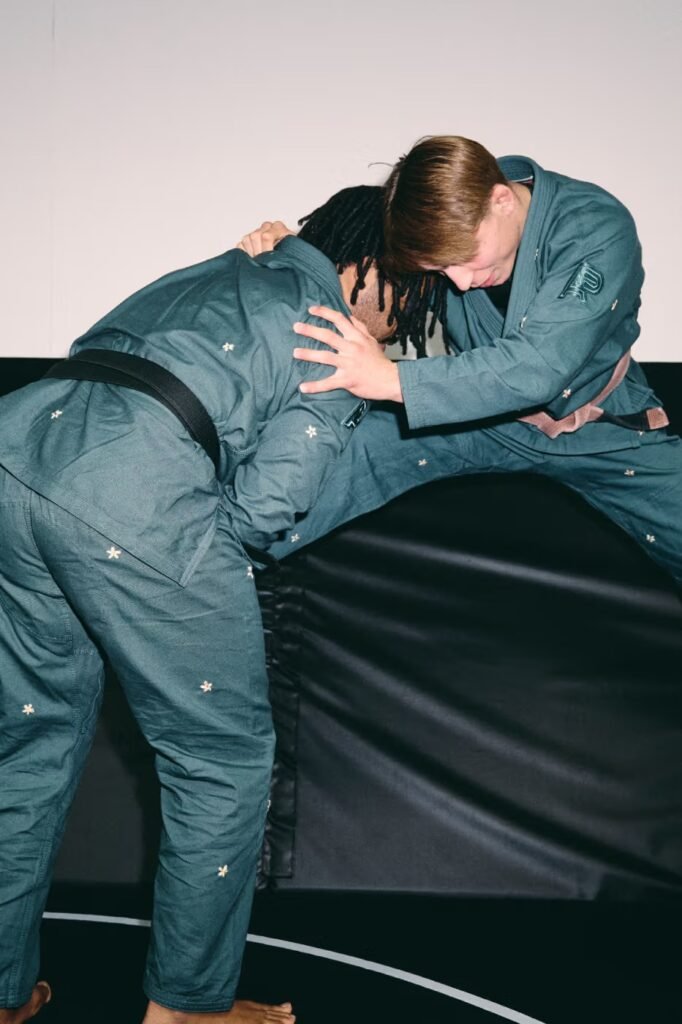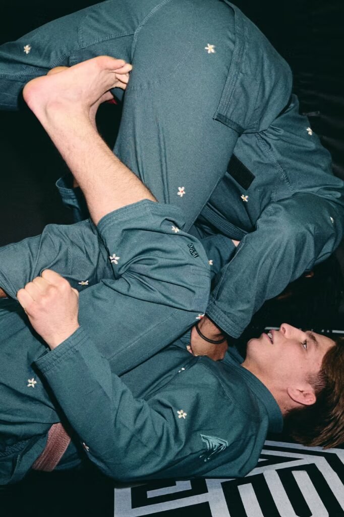 O centro da narrativa visual é um uniforme de artes marciais em lona de peso médio, que equilibra a durabilidade necessária para o combate com uma textura refinada e artesanal. As calças de gi, projetadas com um corte que permite a transição orgânica para o uso cotidiano, reforçam a autoridade do utilitarismo no guarda-roupa contemporâneo, onde a funcionalidade do dojo ignora fronteiras e ocupa o cenário urbano de vanguarda.