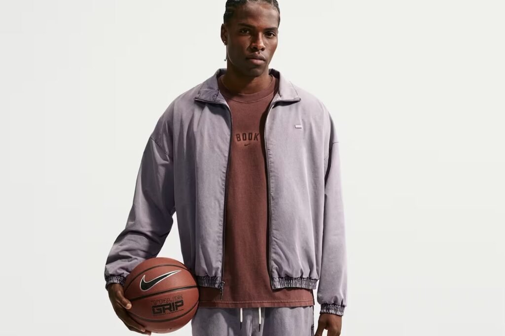 A jaqueta reflete a estética relaxada e refinada do ala-armador do Phoenix Suns, conectando a cultura visual dos túneis da NBA diretamente ao streetwear urbano. Não se trata de um simples lançamento de merchandising, mas de uma construção que prioriza a proporção, a textura e o caimento sobre a logomania barulhenta que satura o mercado atual.