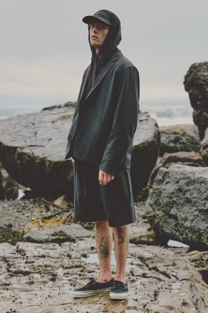 A HAVEN viaja até as costas acidentadas da Ilha de Vancouver para apresentar sua campanha de Primavera 2026, intitulada Along the Coast. Em vez de se basear em temas abstratos, a marca canadense fundamenta seu lançamento na especificidade geográfica, onde pedras desgastadas pelo tempo, o movimento das marés e os padrões de ventos costeiros moldam tanto a narrativa visual quanto a construção das peças. O resultado é uma coleção que equilibra realismo ambiental com clareza técnica, refinando a abordagem da etiqueta em texturas, camadas e uma interação tonal contida.