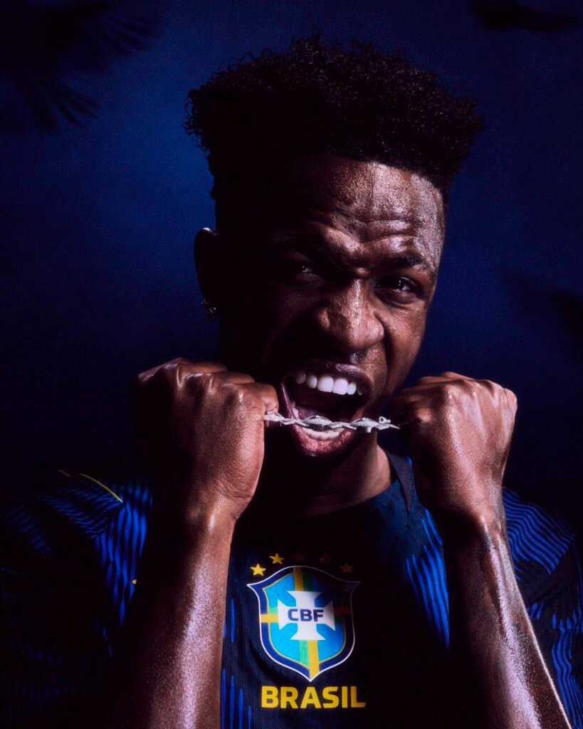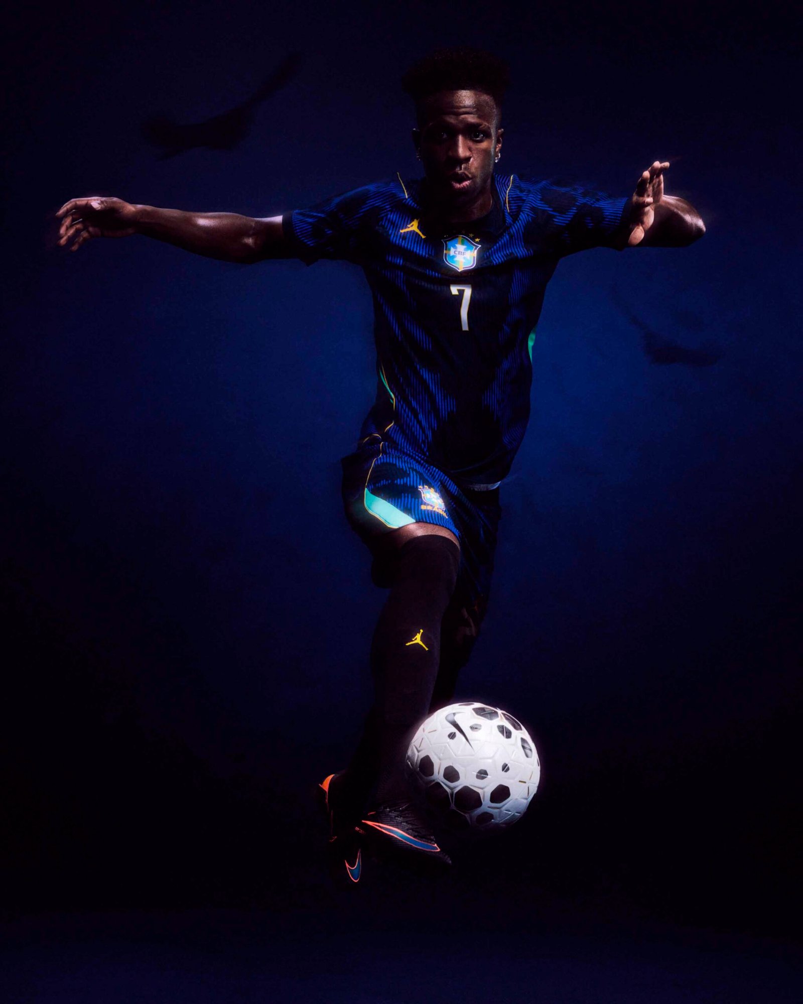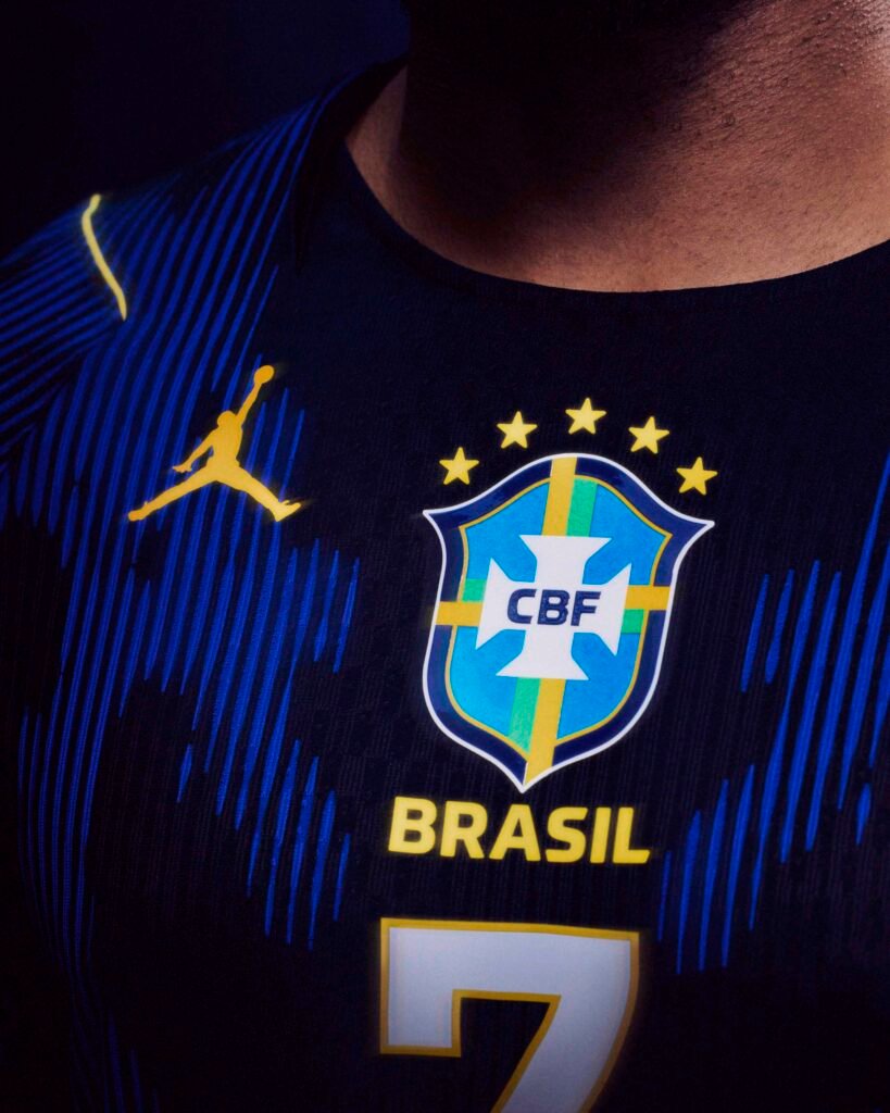 O movimento reflete uma intersecção profunda entre esporte e cultura, onde o futebol assume o papel de principal expressão cultural do planeta. Inspirada nos predadores naturais do Brasil, a camisa incorpora o icônico elephant print da Jordan Brand em tons de azul e amarelo, fundindo a identidade visual do basquete com a agressividade necessária nos gramados.