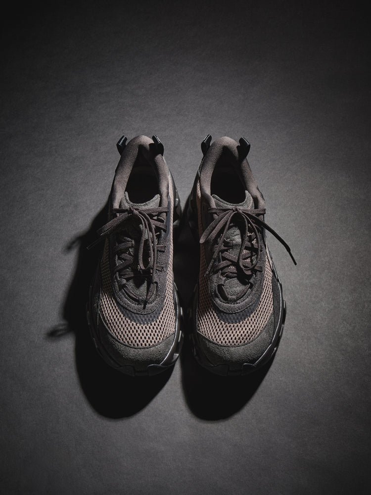 Os grandes protagonistas deste lançamento são os novos sneakers K-Tech 1 e K-Tech 2. O primeiro é um modelo voltado puramente para a alta performance, apresentando cabedal em mesh respirável com sobreposições de camurça sintética em variações de cores como Tofu e Sea Moss.