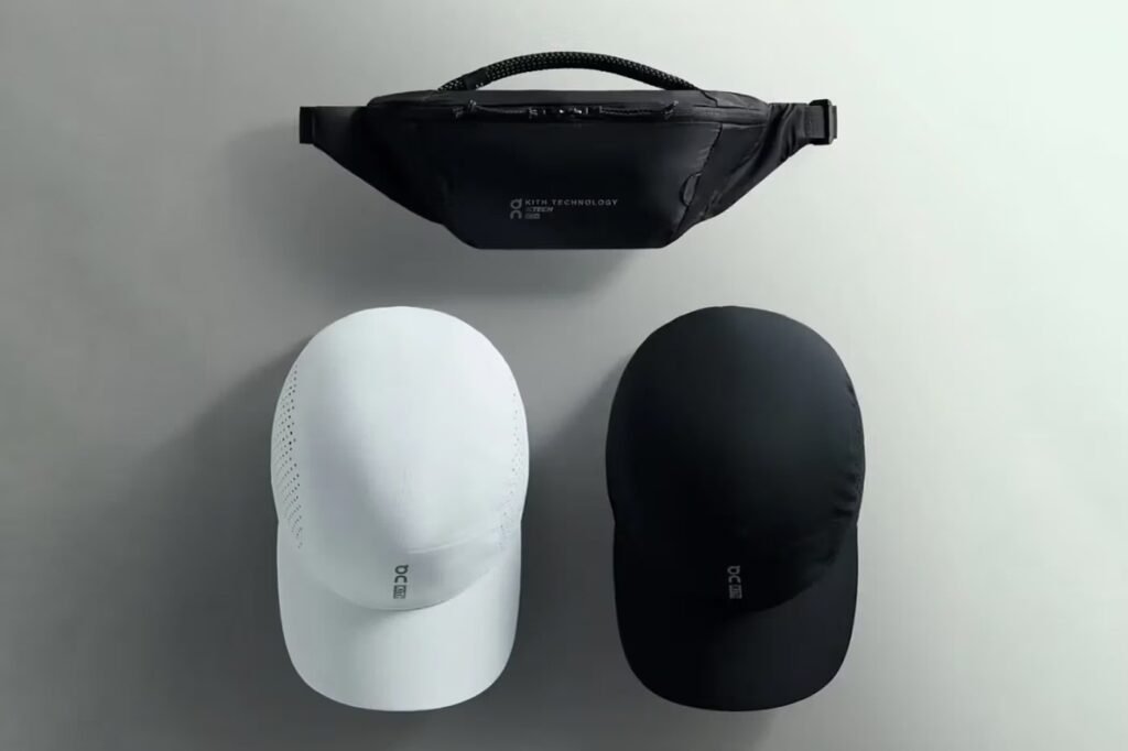 Além dos calçados, a colaboração reimagina a coleção Core da On, injetando a paleta de cores sofisticada da Kith em jaquetas de corrida, camisetas, sports bras e calças técnicas. A cápsula de vestuário é complementada por acessórios de alto desempenho, como o Lightweight Cap 2.0, confeccionado em poliéster reciclado com painéis perfurados para ventilação máxima, e a Waist Pack Lite 2L. Esta pochete minimalista, construída em nylon ripstop de alta resistência e detalhes refletivos, foi desenhada para resistir aos elementos sem comprometer a agilidade do atleta urbana.