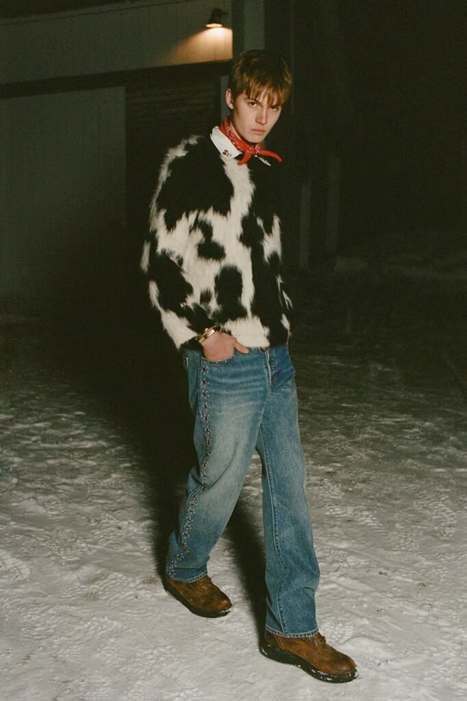 A Levi’s e a Bode oficializaram sua primeira colaboração dentro da coleção Fall/Winter 2026 da etiqueta nova-iorquina, intitulada “Rodeo Bodeo“. O projeto une a autoridade centenária da gigante do denim à visão artesanal de Emily Bode, focada no resgate do folclore e das tradições manuais dos Estados Unidos. O pilar central da cápsula é o Barrel Racer Jean, uma silhueta de perna reta que transforma a estética utilitária em um veículo de narrativa pessoal.