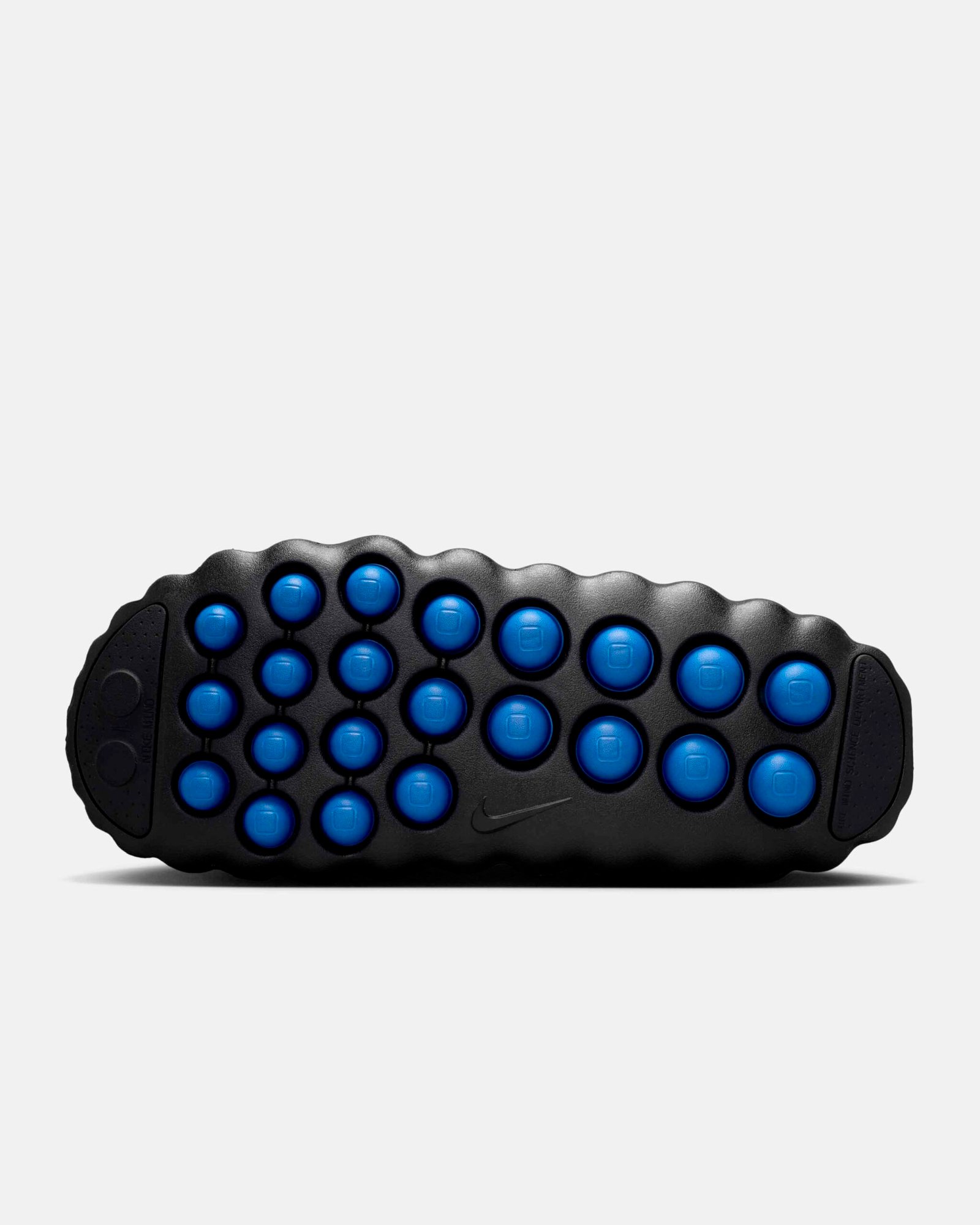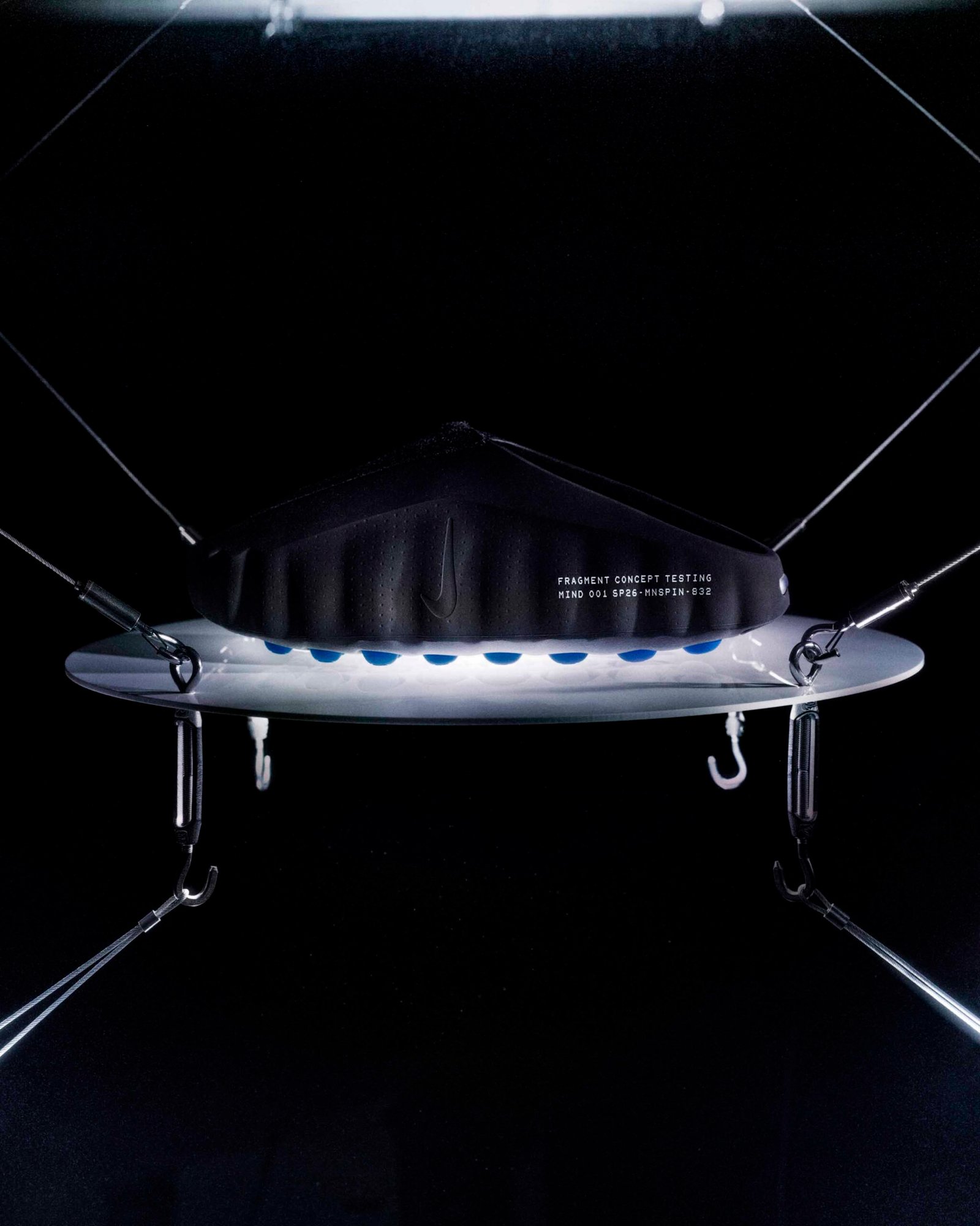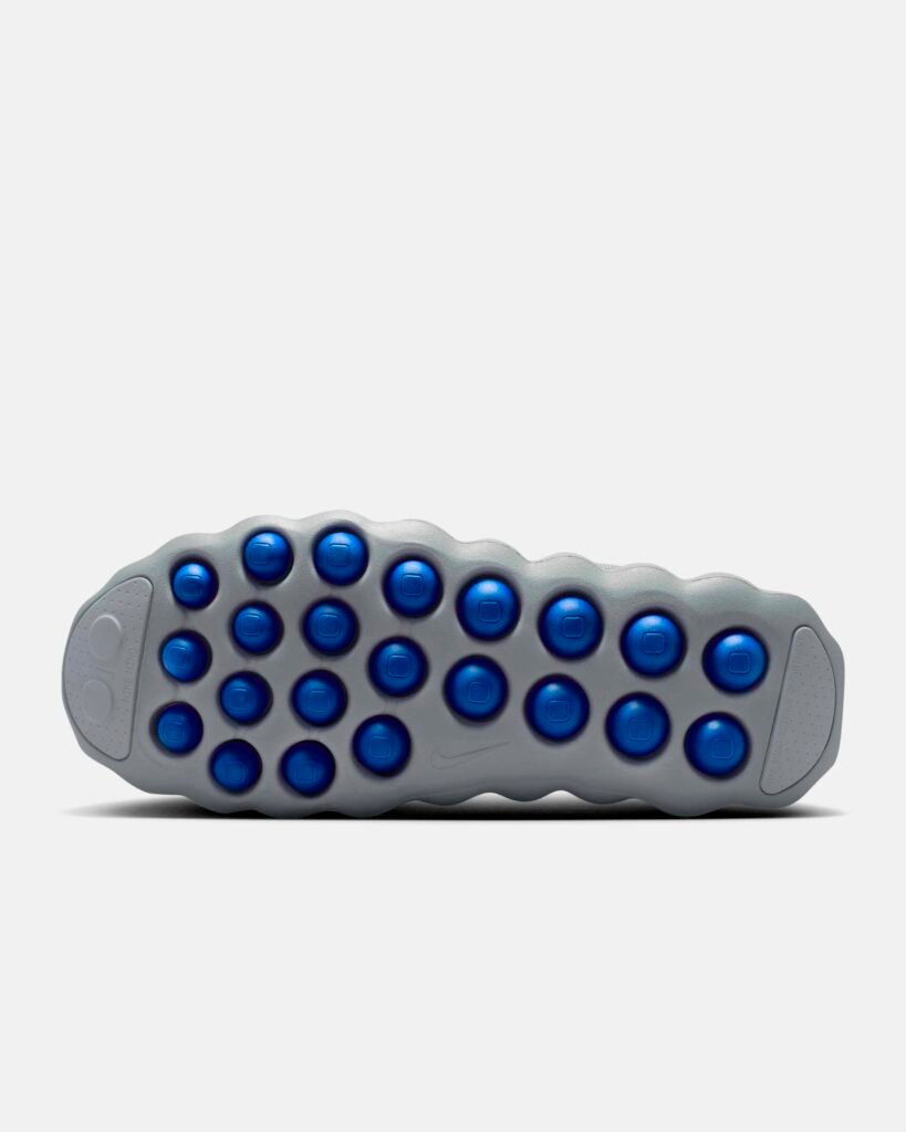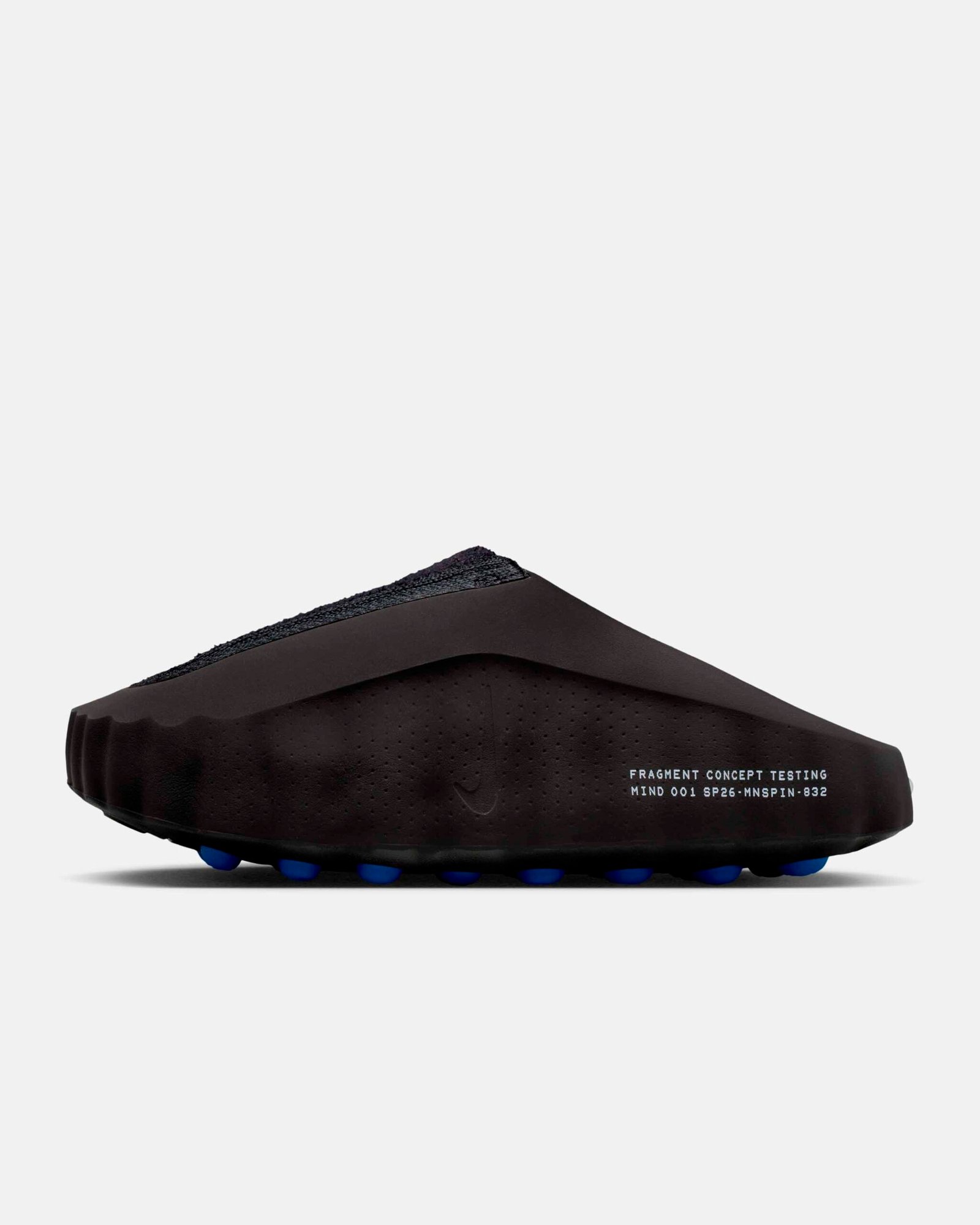 O destaque técnico recai sobre a linha Nike Mind, baseada em neurociência para promover relaxamento através de estímulos sensoriais. O modelo Mind 002 recebeu a transformação mais radical desta collab, substituindo a construção original por um cabedal integral em Flyknit. A estrutura utiliza 22 sensores de espuma independentes que mapeiam pontos de pressão anatômicos, todos tingidos no icônico azul da fragment design.
