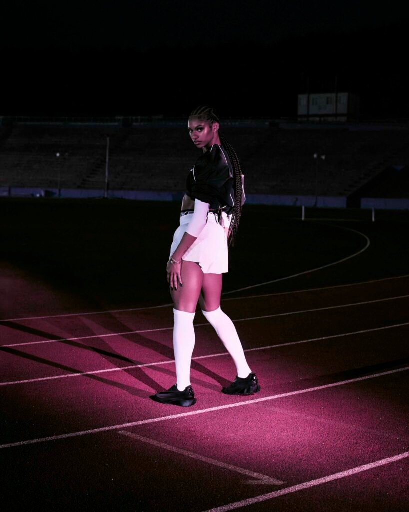 O projeto nasceu de um questionamento sobre como capturar o olhar e a emoção da atleta logo no primeiro contato, resultando em modelos que parecem vir do futuro, mas estão profundamente fincados no DNA atlético da marca. O primeiro lançamento é o Noir, um híbrido ousado que coloca a velocidade das pistas de atletismo no asfalto ao misturar as sapatilhas de corrida com a elegância de um loafer clássico. Com uma construção em cunha que simula a posição de largada de um velocista, o modelo traz a participação da medalhista olímpica Masai Russell para validar essa intersecção entre o pódio e o lifestyle urbano.