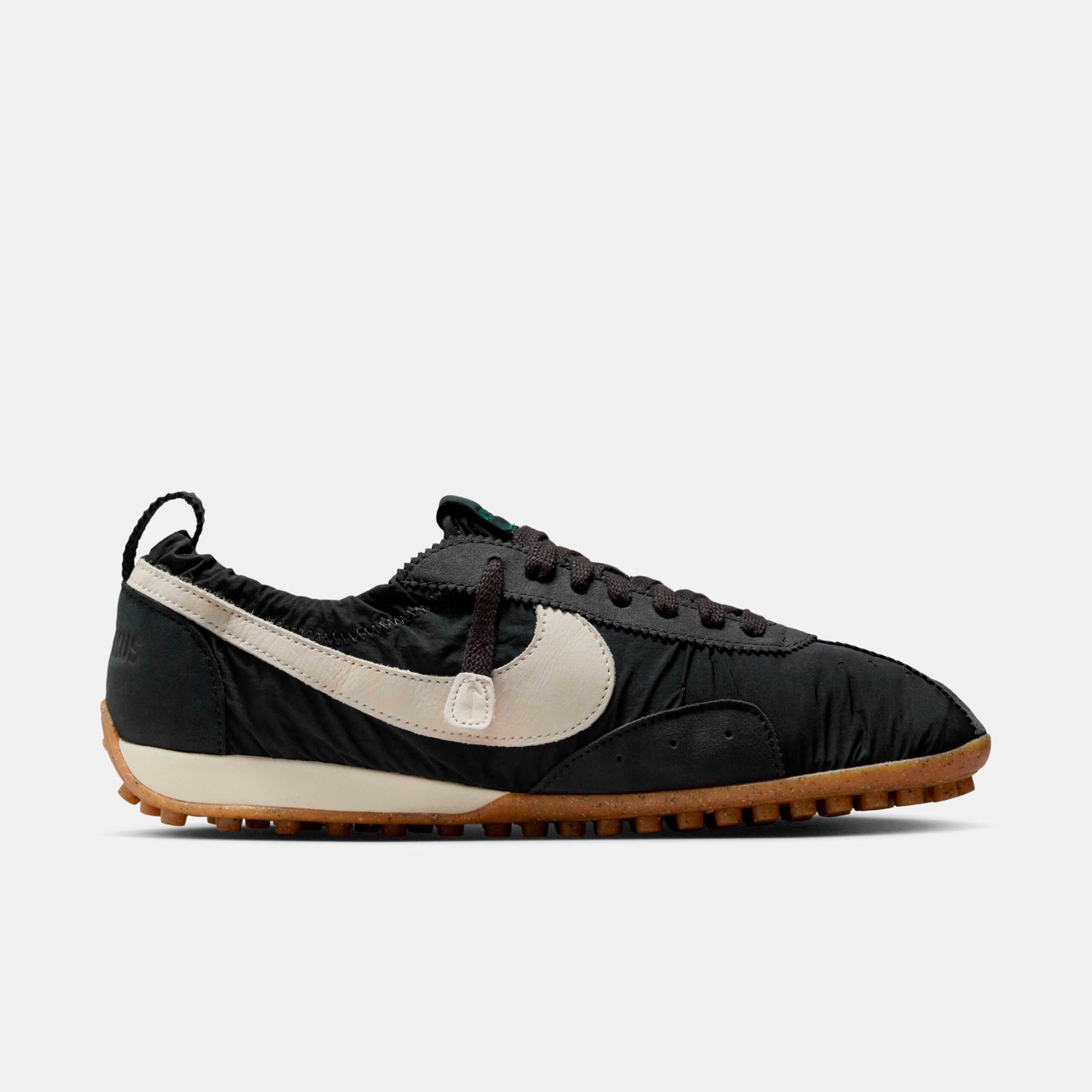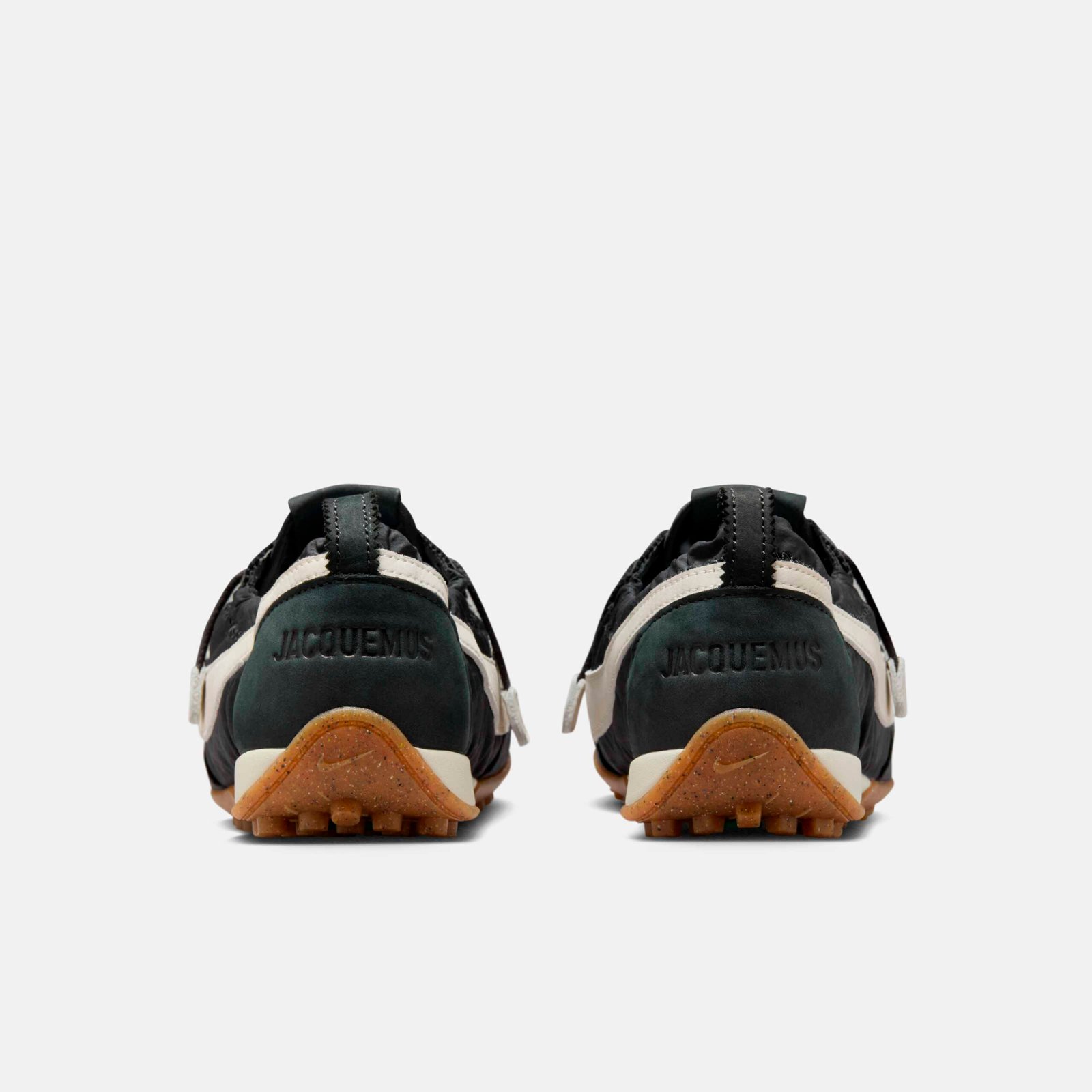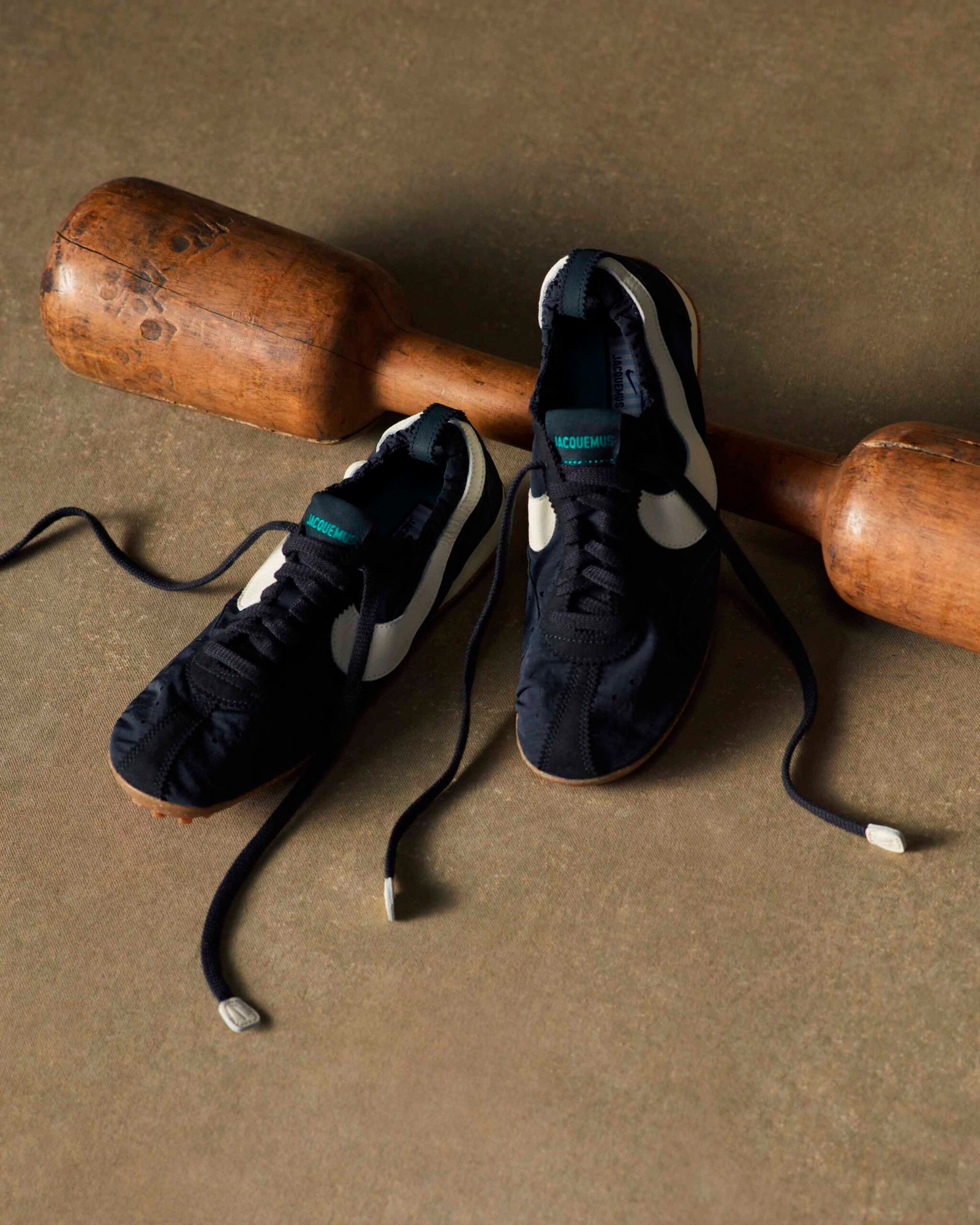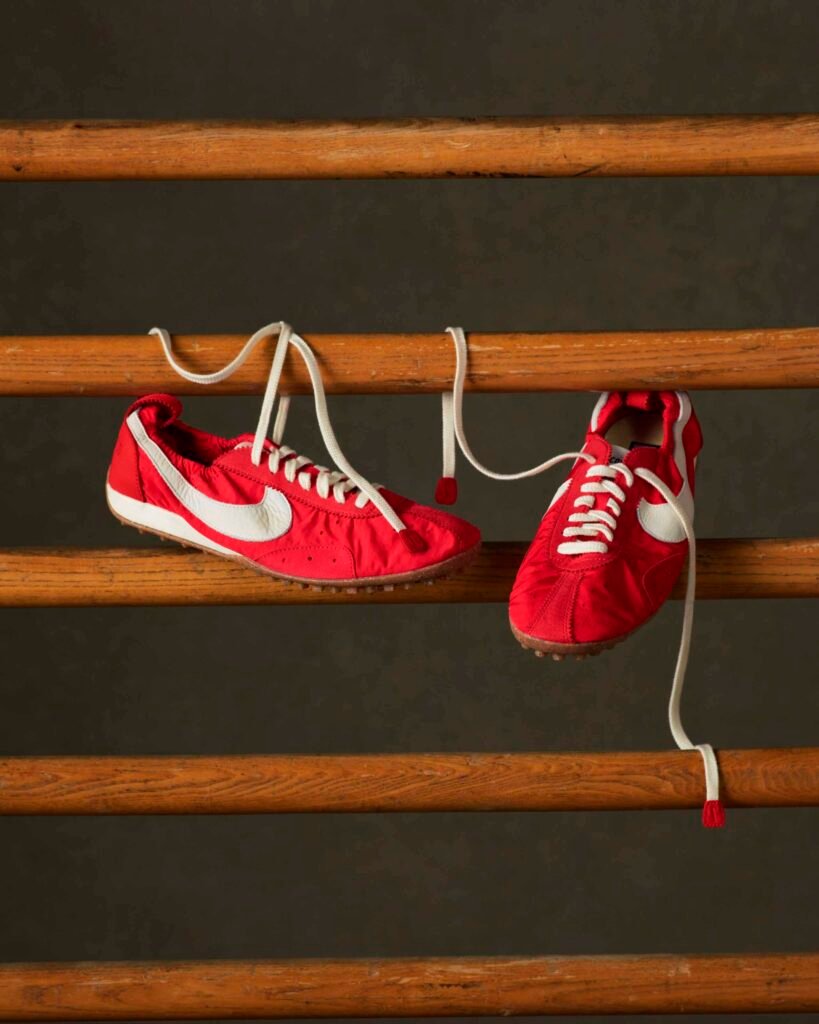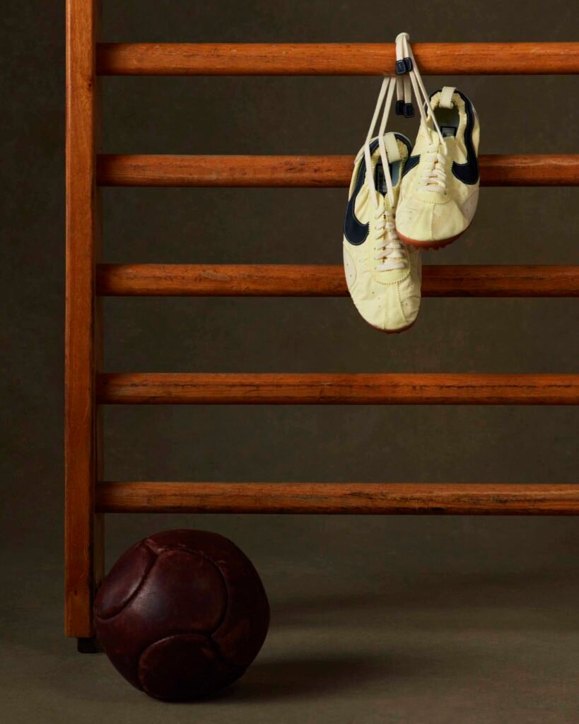 A reinterpretação desse modelo resgata um pedaço fundamental da história do esporte: o Moon Shoe original foi construído à mão por Bill Bowerman, cofundador da Nike, para as seletivas olímpicas de 1972. Famoso por ter sido o primeiro a ostentar a sola waffle — inspirada no ferro de waffles da esposa de Bowerman, o calçado original nunca chegou ao mercado de massa, mas serviu de DNA para sucessos como o Waffle Trainer. Ao acessar os arquivos da marca, Jacquemus viu a oportunidade de resignificar esse clássico. “Descobri uma peça icônica, atemporal, mas moderna em sua simplicidade e execução. Vi imediatamente a oportunidade de escrever uma nova história e reinterpretá-la à nossa maneira”, explicou o designer.