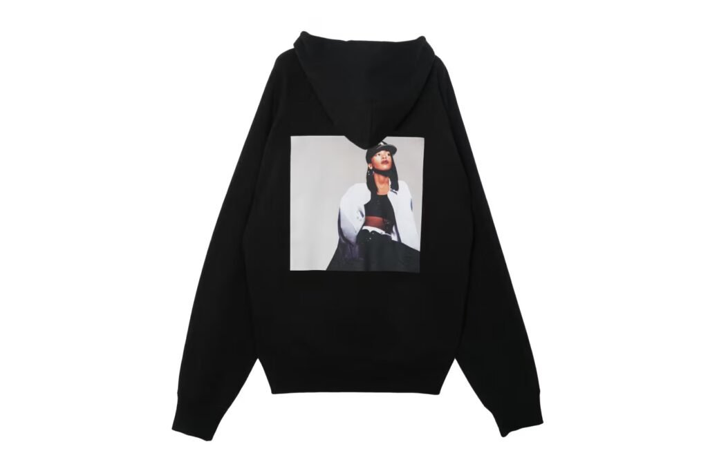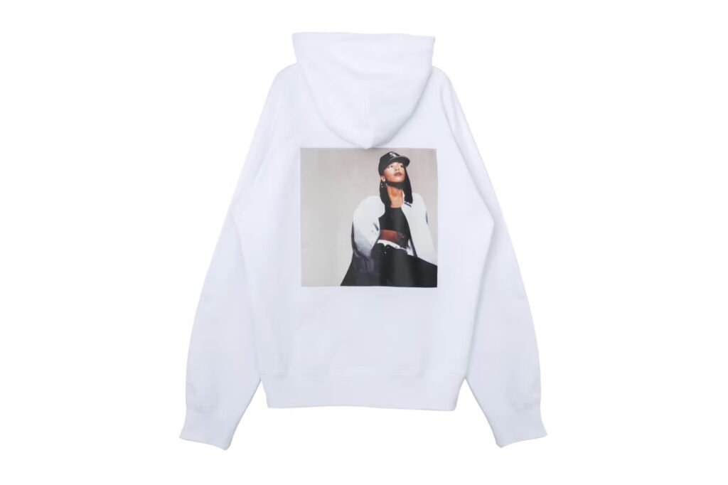 No centro da cápsula está a arte do single “At Your Best (You Are Love)”, uma faixa que ocupa um lugar distinto na discografia de Aaliyah. Ao selecionar esta referência visual específica, a sacai ancora a coleção em um momento que carrega peso emocional e cultural, sinalizando a intenção de tratar a artista não como um símbolo de nostalgia, mas como uma figura duradoura cuja linguagem estética permanece relevante. O uso da imagem da capa funciona como uma âncora visual e um ponto de referência conceitual, traduzindo temas de intimidade e vulnerabilidade para um formato vestível.