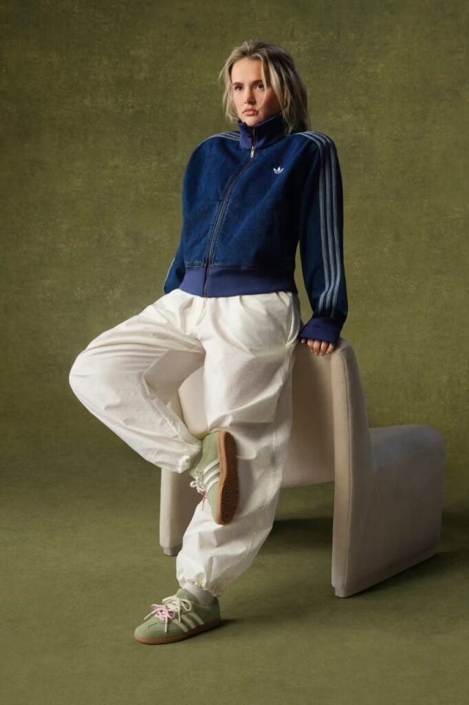 A colaboração organiza a estética “clean” e a paleta de tons pastéis que são marcas registradas da estrela em uma cápsula que funde a herança esportiva da marca com uma sensibilidade feminina e lúdica. O resultado são reinterpretações do Superstar II e do Samba, silhuetas que a própria Molly-Mae descreve como pilares essenciais de seu guarda-roupa pessoal.