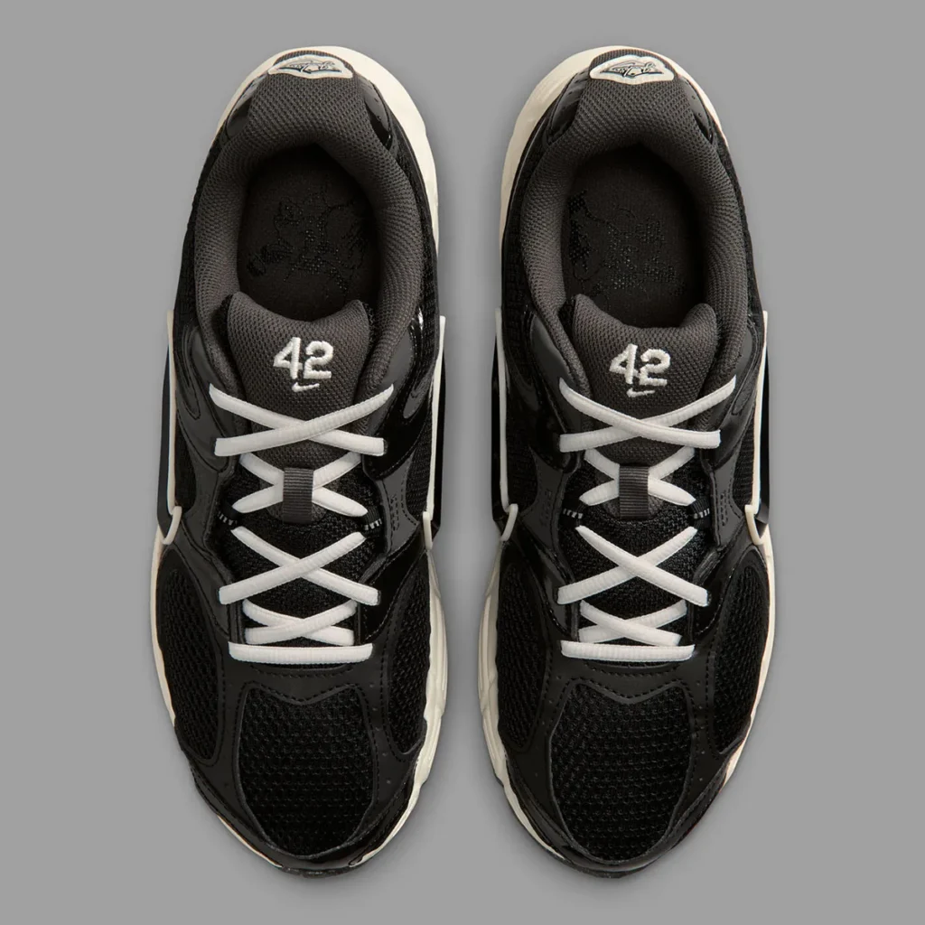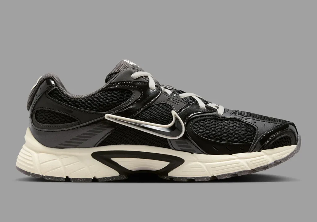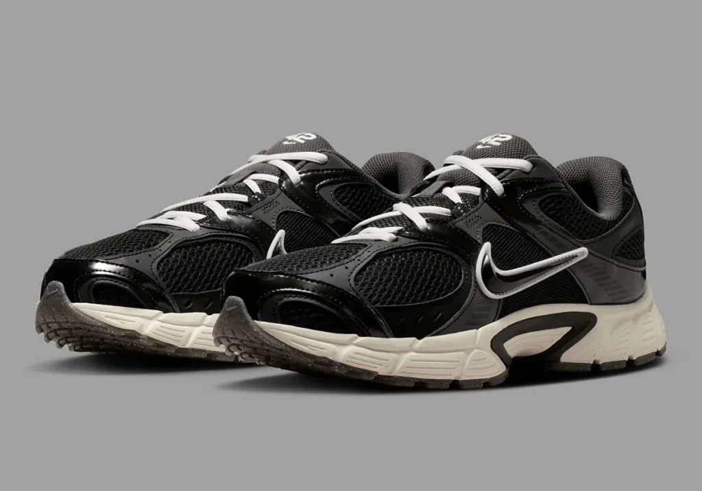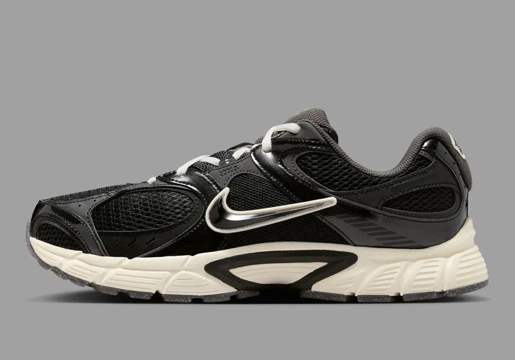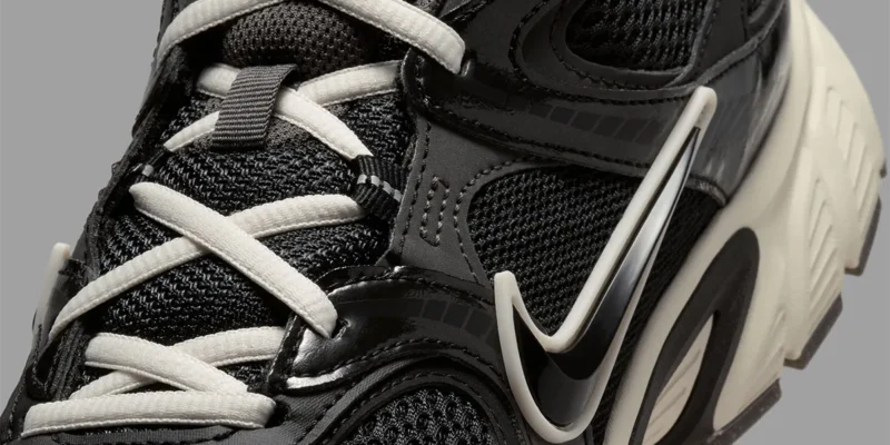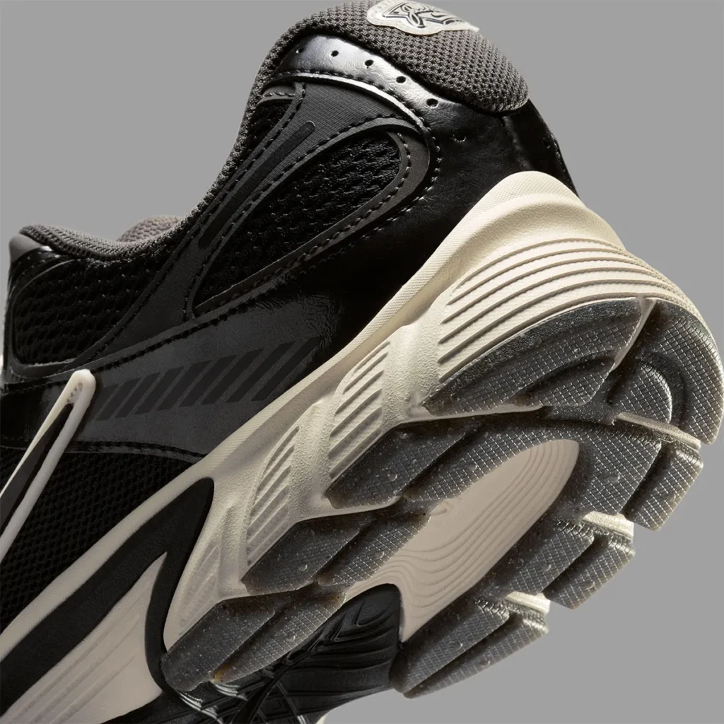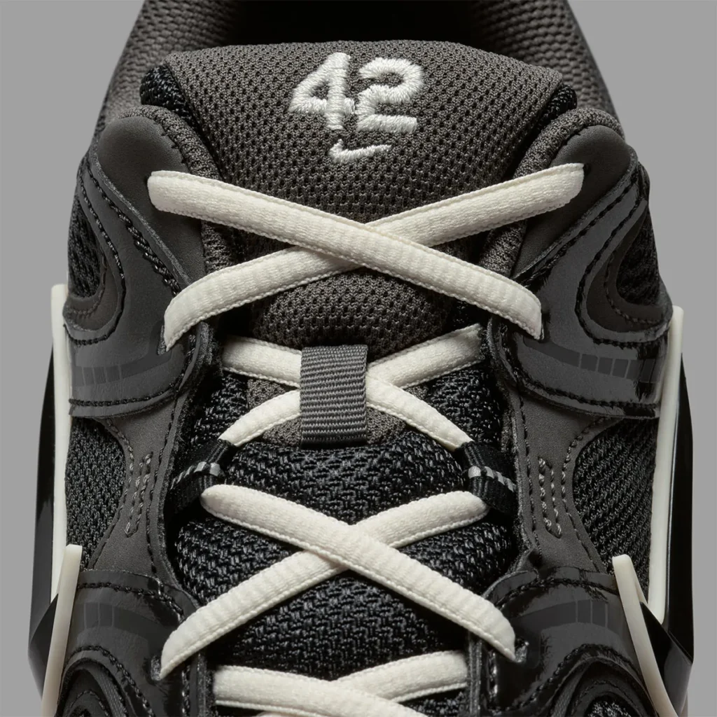 O modelo, que surfa na onda da tendência Y2K, apresenta um cabedal de mesh preto com sobreposições em couro sintético tonal. O contraste surge de forma estratégica: o Swoosh e os cadarços em tom Sail conversam com a entressola Pale Ivory, injetando um visual levemente envelhecido que remete à longevidade do legado de Robinson.