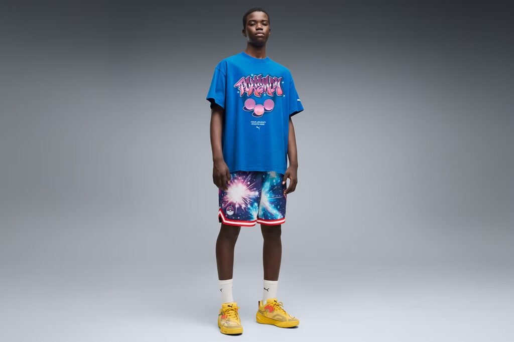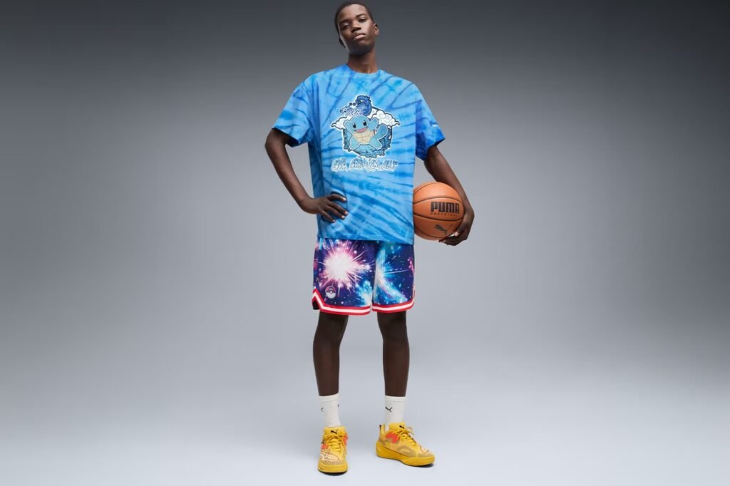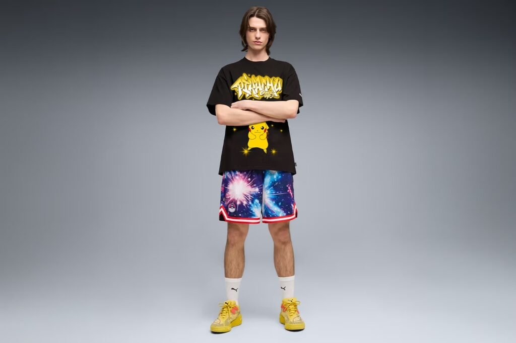 No calçado, a PUMA desconstrói os modelos Mostro e Fade Nitro, aplicando colorways temáticas que representam a transição solar e lunar. A divisão PUMA Hoops também integra o drop com uma versão eletrizante do All-Pro NITRO 2, inspirada no Pikachu, utilizando acentos de raios e a tecnologia de performance da marca para as quadras de basquete.