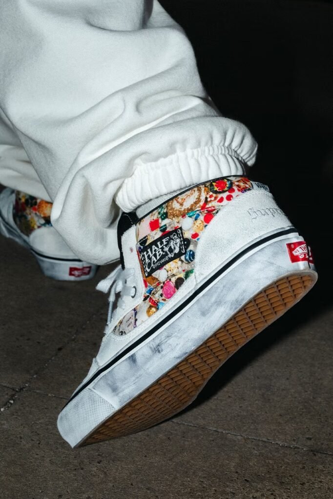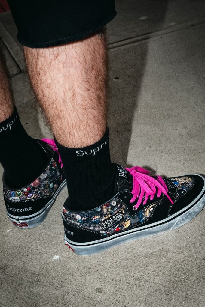A expansão da cápsula atinge o segmento de calçados através de uma parceria tripla com a Vans, que apresenta iterações exclusivas dos modelos Half Cab e Era cobertos pelas artes de Kelley. Nos acessórios, o drop inclui bonés Camp Cap, shapes de skate e uma manta premium, fabricada nos EUA pela tradicional tecelagem Faribault Mills.